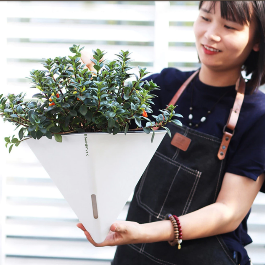 DOCNEEM XIN GIỚI THIỆU ĐẾN BẠN MÃ SẢN PHẨM - CHẬU TRỒNG CÂY TỰ TƯỚI TREO TƯỜNG TAM GIÁC THÔNG MINH MONROVIA K104 _ Chất liệu: PP cao cấp _ Cấu tạo: Chậu bao gồm