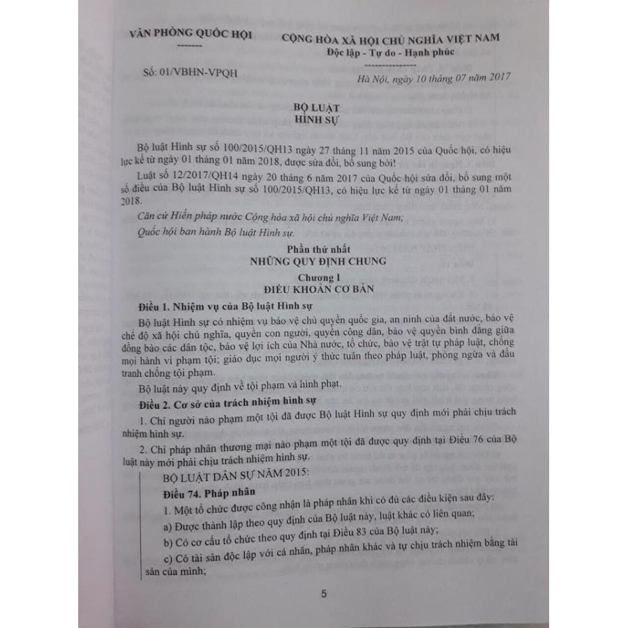 Ngày 27 tháng 11 năm 2015, Quốc hội đã ban hành Bộ luật hình sự năm 2015 thay thế cho Bộ luật hình sự năm 1999 (sửa đổi, bổ sung năm 2009), đồng thời Quốc hội cũng ban hành Nghị quyết số 109/2015/QH13 về việc Thi hành Bộ luật hình sự. Theo đó, Bộ luật hình sự năm 2015 sẽ có hiệu từ 1 tháng 7 năm 2016. Tuy nhiên, do Bộ luật hình sự 2015 có nhiều sai sót, cần có thời gian sửa chữa, bổ sung, nên Bộ luật này đã bị hoãn thi hành theo quy định tại Nghị quyết số 144/2016/QH13 của Quốc hội. Ngày 20 tháng 6 năm 2017, Quốc hội đã ban hành Luật sửa đổi, bổ sung một số điều của Bộ luật hình sự năm 2015. Căn cứ Nghị quyết số 41/2017/QH14 ngày 20 tháng 6 năm 2017 thì Bộ luật hình sự năm 2015 (bao gồm cả phần sửa đổi, bổ sung năm 2017) sẽ có hiệu lực thi hành kể từ ngày 1 tháng 1 năm 2018. Khắc phục những bất cập của Bộ luật hình sự năm 1999 (sửa đổi, bổ sung năm 2009), Bộ luật hình sự năm 2015 (sửa đổi, bổ sung năm 2017) đã thể chế hóa đầy đủ, toàn diện các chủ trương, đường lối của Đảng như: Đề cao hiệu quả phòng ngừa và tính hướng thiện trong việc xử lý người phạm tội; giảm hình phạt tù, mở rộng áp dụng hình phạt tiền, hình phạt cải tạo không giam giữ đối với một số loại tội phạm; hạn chế áp dụng hình phạt tử hình; khắc phục tình trạng hình sự hoá quan hệ kinh tế, quan hệ dân sự và bỏ lọt tội phạm; quy định là tội phạm đối với những hành vi nguy hiểm cho xã hội mới xuất hiện; bảo vệ quyền con người theo tinh thần Hiến pháp năm 2013; bảo vệ trật tự, an toàn xã hội, bảo vệ và thúc đẩy sự phát triển nền kinh tế thị trường định hướng xã hội chủ nghĩa, bảo đảm mọi người được sống trong một môi trường an toàn, lành mạnh… Để kịp thời phục vụ công tác triển khai thi hành Bộ luật hình sự năm 2015 (sửa đổi, bổ sung năm 2017) và đưa Bộ luật đi vào cuộc sống, Nhà xuất bản Thế Giới cho xuất bản cuốn sách: “Chỉ dẫn áp dụng Bộ luật hình sự năm 2015 (sửa đổi, bổ sung năm 2017)”. Cuốn sách do TS Trần Văn Biên biên soạn theo phương pháp chỉ dẫn chi tiết từng điều luật tương ứng với các điều luật trong các bộ luật khác đang hiện hành có liên quan nhằm mục đích tuyên truyền, phổ biến pháp luật; đồng thời, hướng dẫn bạn đọc tra cứu, áp dụng Bộ luật quan trọng này một cách dễ dàng, thuận tiện và hiệu quả.