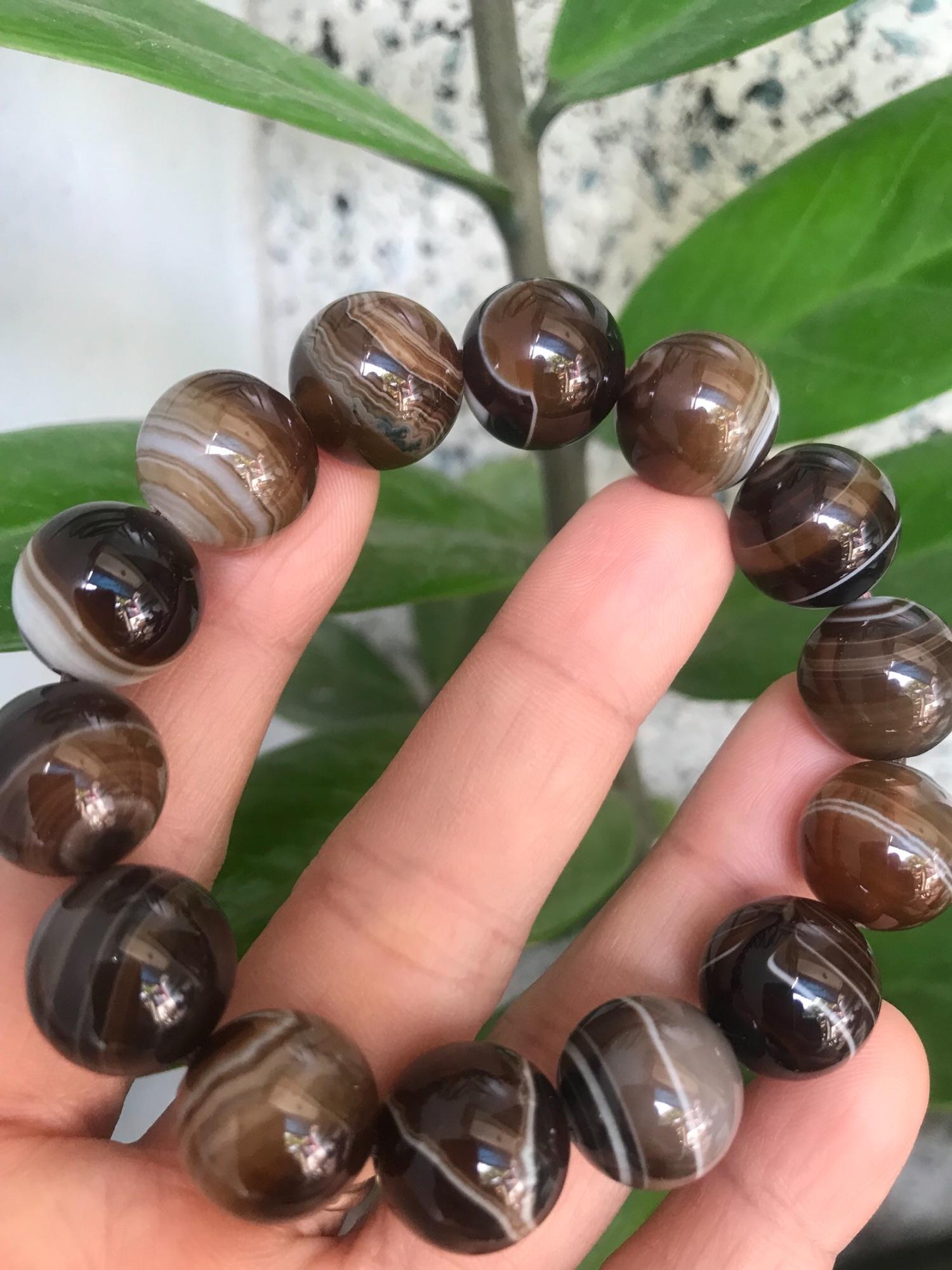✨CHIẾC VÒNG MÃ NÃO VÂN VẰN MÀU VÀNG NÂU ĐẤT SẬM ĐẸP SIZE 14MM NAM MẠNG THỔ GỒM 14 HẠT ĐẸP