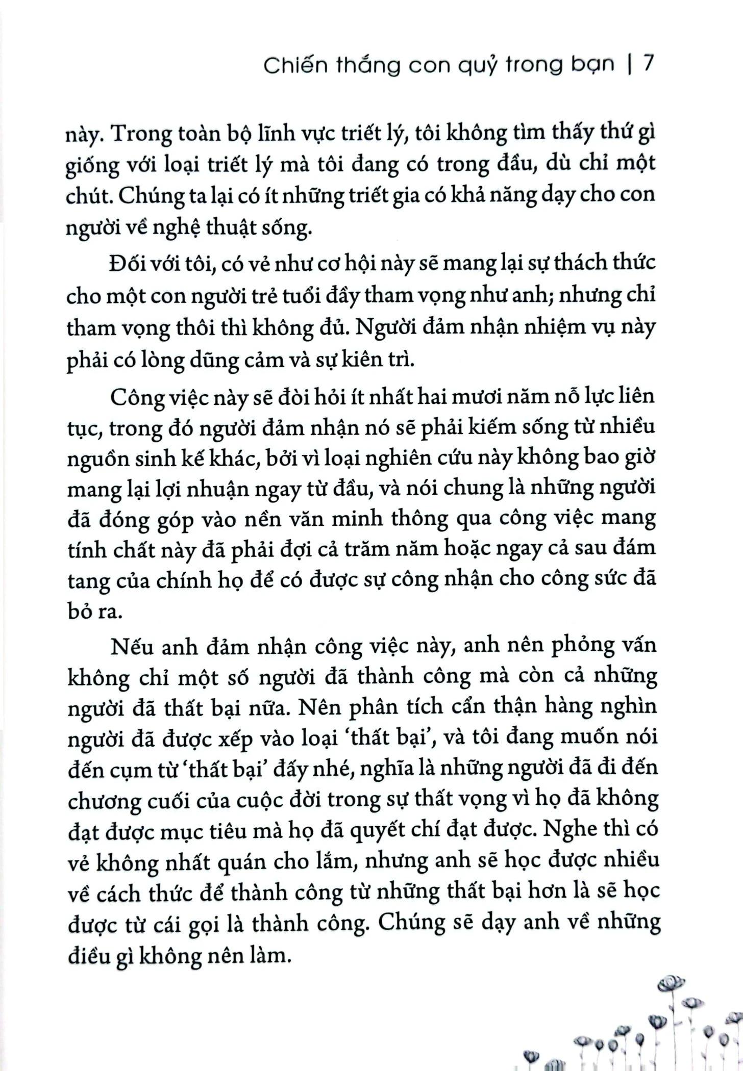 Những con người buông thả là những con người cho phép mình bị ảnh hưởng và điều khiển bởi những hoàn cảnh bên ngoài tâm trí của họ. Đó là lời của Quý ngài Ác quỷ. Nếu không muốn bị Quý ngài này xâm chiếm cuộc sống của bạn suốt khoảng thời gian tồn tại trên đời, bạn cần phải bước vào cuộc chiến thực sự với phần “Con” của bản thân, dựa trên những hướng dẫn hữu ích từ Napoleon Hill .