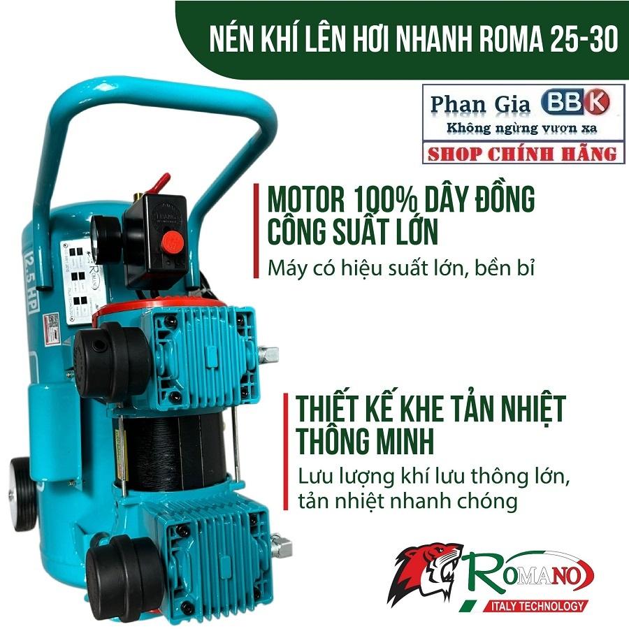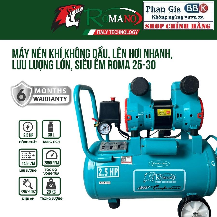 ✨[chính hãƞg] Máy nén khí không dầu lên hơi nhanh ROMANO 30L, Mô tơ 100% Dây đồng, Bảo hành 1 năm