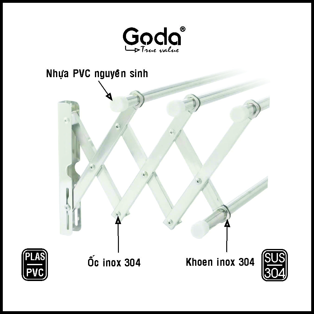 Sản phẩm: Thanh treo tường inox đa năng không cần khoan tường Prota ống 19mm CÁC ĐIỂM NỔI BẬT -Thanh treo tường inox đa năng không cần khoan tường ống 19mm Prota được làm bằng