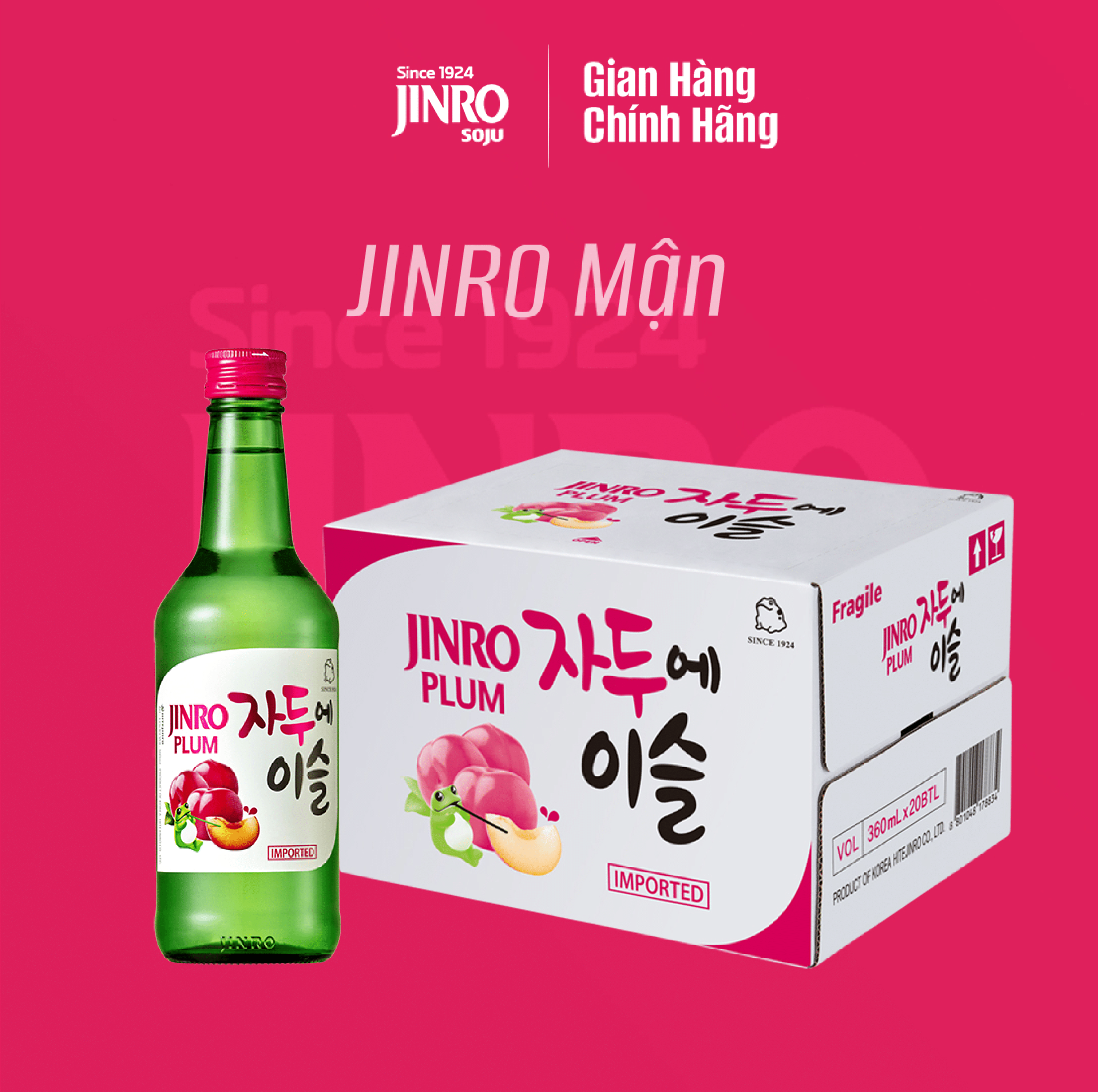 Mua tại TiktokChiết xuất từ quả mận Việt Nam hoàn toàn tự nhiên mang lại hương vị ngọt nhẹ và chua thanh Thành phần cấu tạo: Gạo, nước, đường, men được lọc qua lớp than tre hoạt tính, hương mận tự nhiên Dung tích: 360ml Nồng độ: 13% Thời hạn sử dụng: Không có thời hạn sử dụng Hướng dẫn sử dụng: Dùng trực tiếp, ngon hơn khi ướp lạnh Hướng dẫn bảo quản: Soju phải được bảo quản ở điều kiện nơi khô mát, đảm bảo an toàn vệ sinh và tránh ánh nắng trực tiếp Xuất xứ: Hàn Quốc Sản xuất tại: HITEJINRO CO., LTD **Cảnh báo: Trẻ vị thành niên, phụ nữ trong giai đoạn mang thai và cho con bú không nên sử dụng đồ uống có cồn.