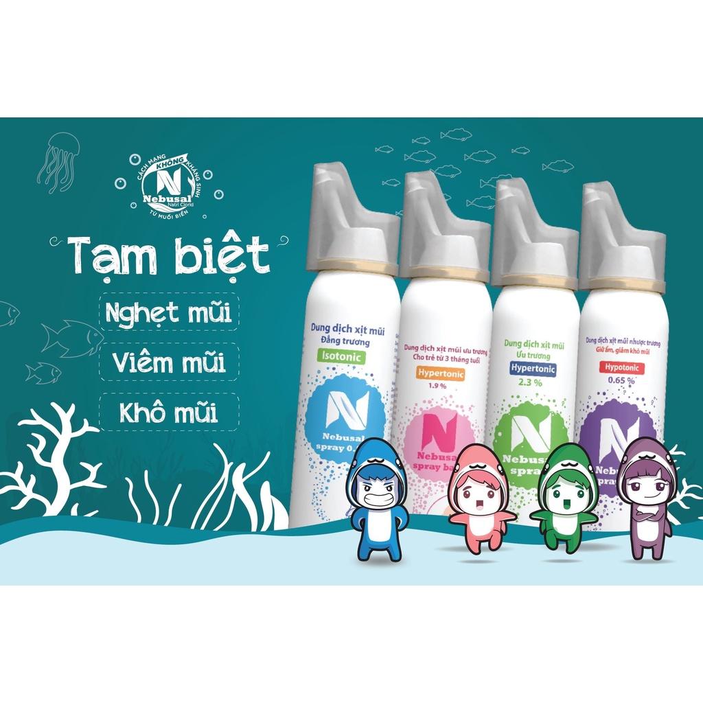 Dung dịch xịt vệ sinh mũi Nebusal Spray là dung dịch nước muối biển sinh lý đẳng trương hàng đầu tại Việt Nam, được sản xuất theo dây chuyền đạt chuẩn GMP-WHO, an toàn với