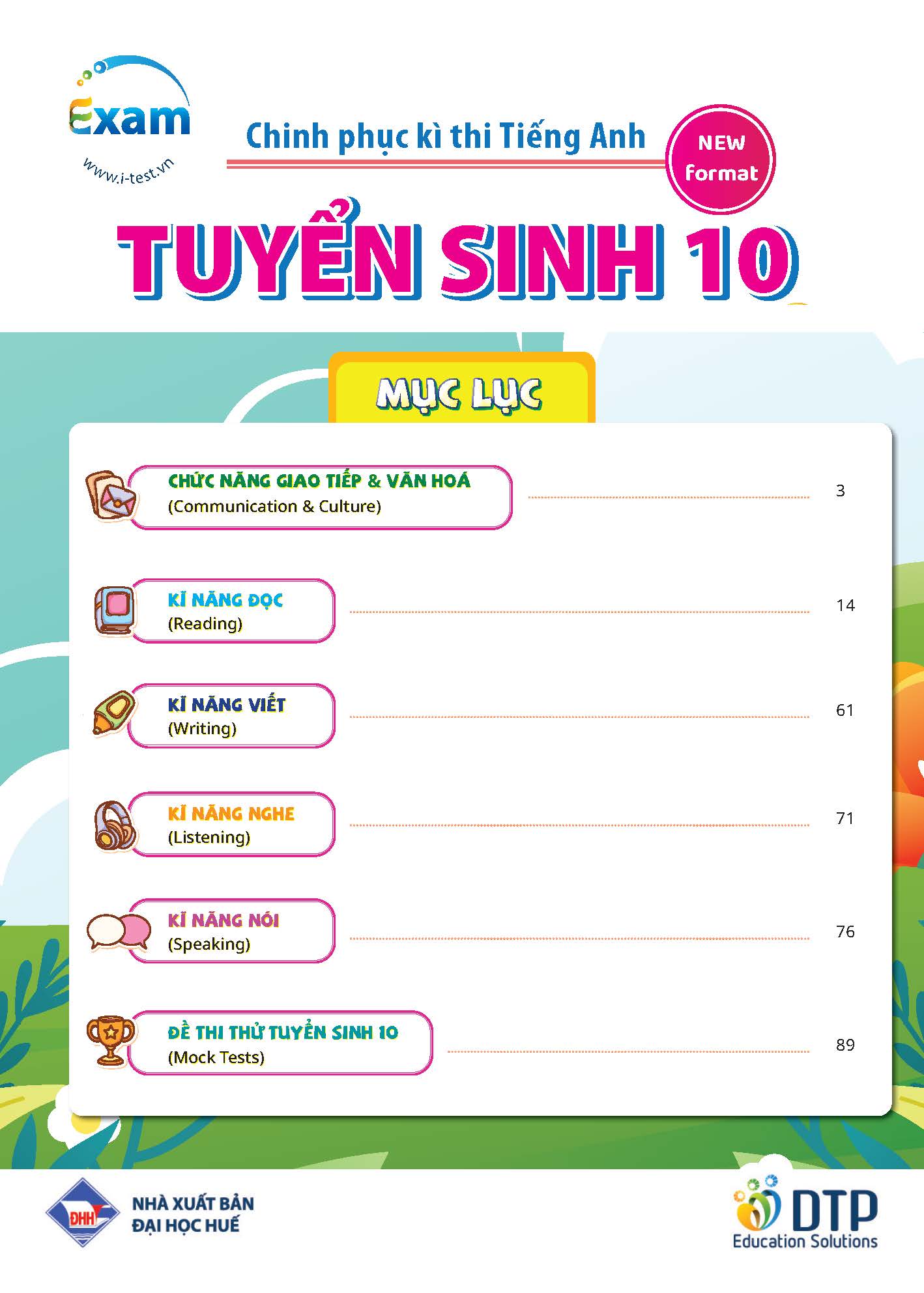 Mua tại TiktokChinh phục kì thi Tiếng Anh - Tuyển sinh 10 tập 2 được biên soạn nhằm trang bị cho các em học sinh nguồn tài nguyên bổ trợ phong phú theo chương trình học và giúp các em chuẩn bị tốt nhất cho kì thi tuyển sinh lớp 10 môn tiếng Anh. Sách bao gồm phần tóm tắt lý thuyết và bài tập thực hành được thiết kế bám sát các dạng câu hỏi trong đề thi tuyển sinh lớp 10, tạo cơ hội cho các em làm quen với các định dạng đề thi cũng như củng cố kiến thức từ vựng, ngữ pháp, phát âm và thực hành các chiến lược làm bài một cách hiệu quả.
