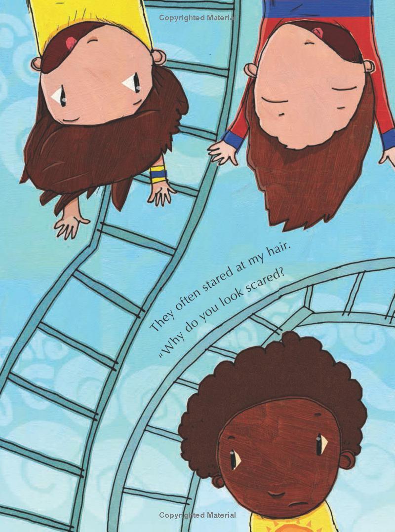 Chocolate Me! The boy is teased for looking different than the other kids. His skin is darker, his hair curlier. He tells his mother he wishes he could be more like everyone else. And she