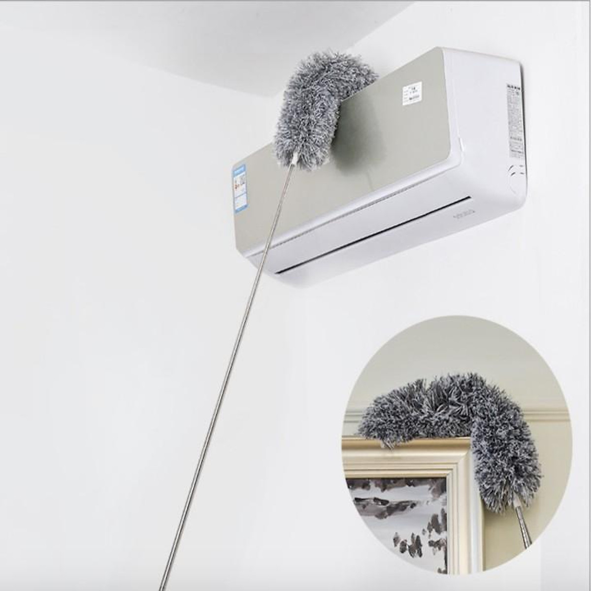 Đầu chổi lông uốn dẻo có thể quét sạch mọi ngóc cạnh của trần nhà, tủ kính…