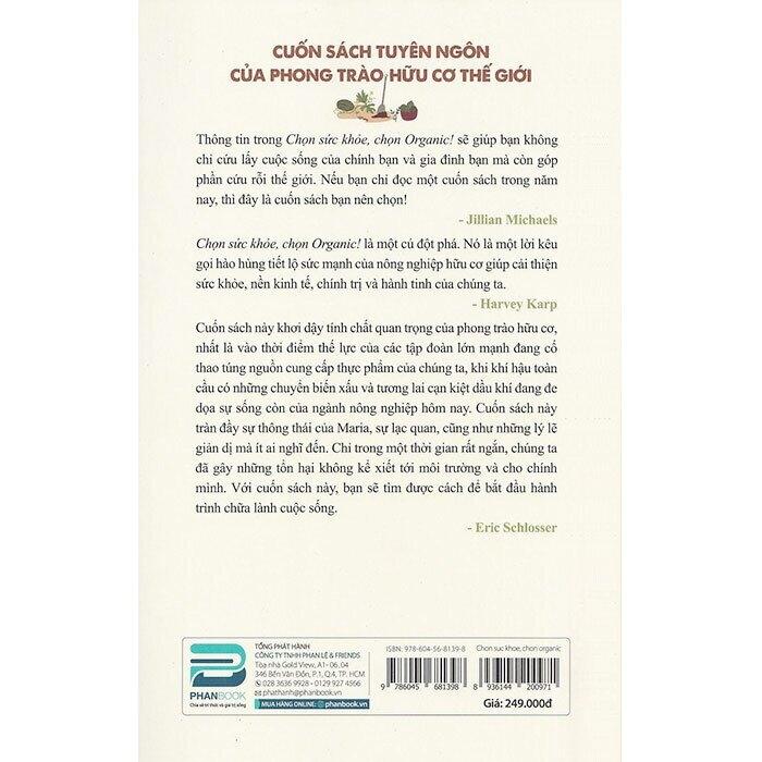 "Thông tin trong Chọn sức khỏe, chọn Organic! sẽ giúp bạn không chỉ cứu lấy cuộc sống của chính bạn và gia đình bạn mà còn góp phần cứu rỗi thế giới. Nếu bạn chỉ đọc một cuốn sách trong năm nay, thì đây là cuốn sách bạn nên chọn!"_ Jillian Michaels