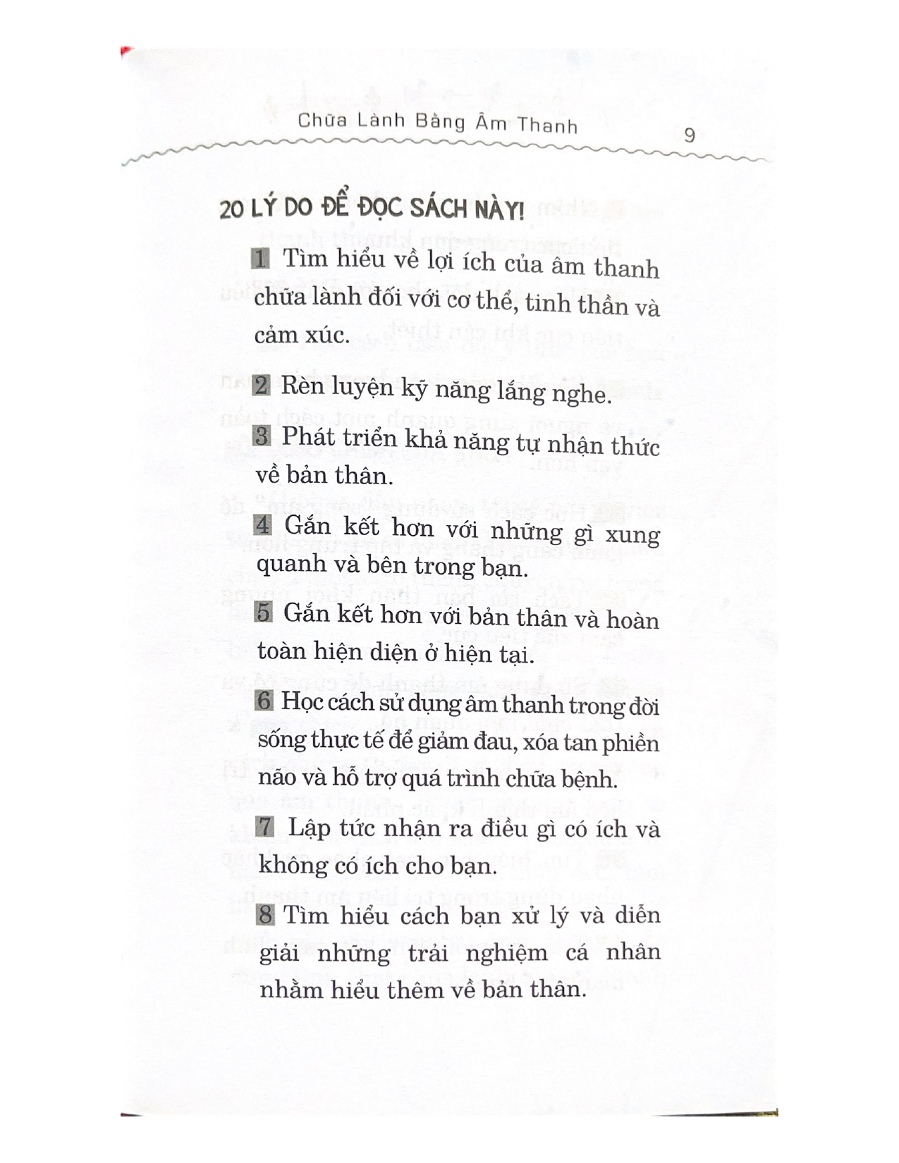 Với nhiều thông tin và bài tập hữu ích, được trình bày một cách ngắn gọn và dễ hiểu, CHỮA LÀNH BẰNG ÂM THANH sẽ đưa bạn vào cuộc hành trình khám phá những lợi ích tuyệt vời của âm thanh chữa lành. Khi hiểu rõ hơn về bản chất của âm thanh, bạn sẽ có thể tìm cho mình công cụ phù hợp – chẳng hạn như một nhạc cụ, một bản nhạc sâu lắng, hay chính giọng nói của mình – để tiếp thêm năng lượng, thư giãn đầu óc, và thậm chí là cải thiện sức khỏe một cách toàn diện, cả về thể chất, cảm xúc lẫn tinh thần.