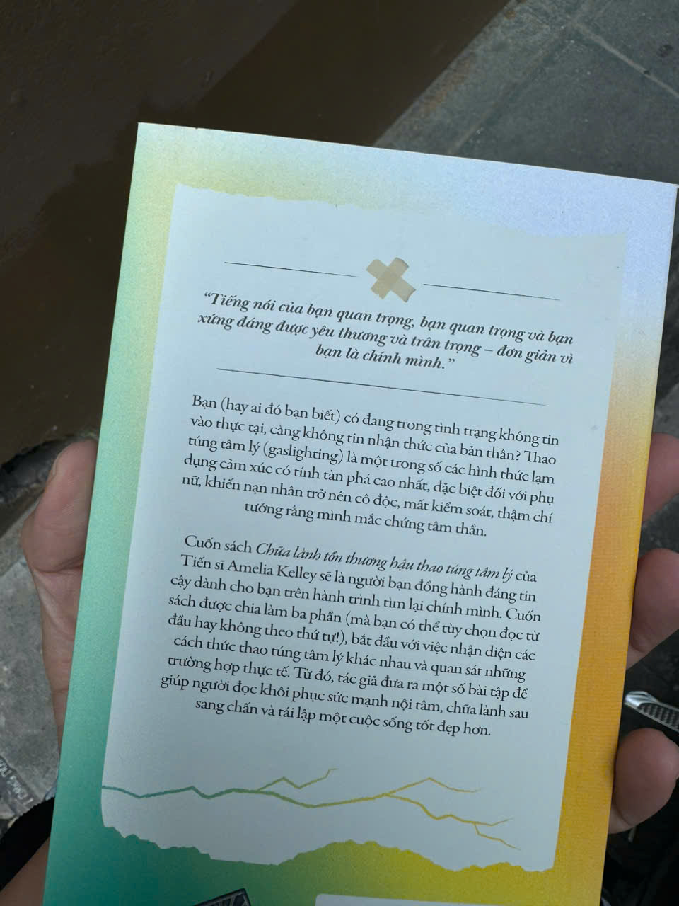 Trong cuốn sách “Chữa lành tổn thương hậu thao túng tâm lý”, Tiến sĩ Amelia Kelley, nhà trị liệu tích hợp am hiểu về vấn đề sang chấn, đã đưa ra liệu pháp và các công cụ dựa trên bằng chứng xác thực để giúp đỡ phụ nữ phát hiện và tự bảo vệ mình trước sự thao túng vốn có khả năng diễn ra trong mọi khía cạnh đời sống, từ gia đình, các mối quan hệ tình cảm, đến công việc, học tập và y tế. Cách tiếp cận có hướng dẫn của bà nhằm chữa lành cho những người vừa thoát khỏi tình trạng bị lạm dụng sẽ giúp họ hình thành ý thức cao hơn về giá trị bản thân, lòng tự trọng và sức mạnh bên trong.