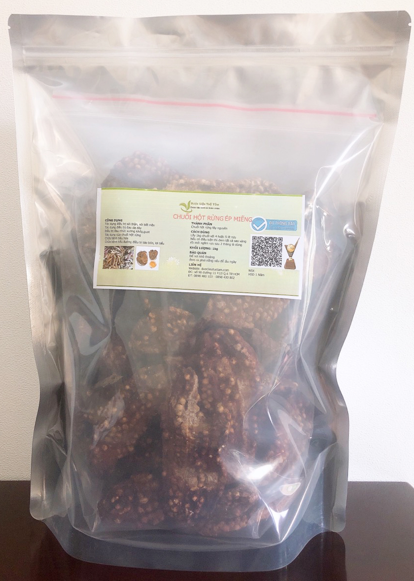 Mô Tả Sản Phẩm Chuối hột rừng là vị thuốc được nhiều người sử dụng, làm đồ uống và trà vừa ngon và tốt cho sức khỏe Chuối hột rừng có thân cao 3-4 m, mọc tự nhiên rất nhiều ở các vùng miền núi nước ta như Trường Sơn,Tây Bắc, Tây Nguyên ,miền Trung, Bắc Trung Bộ… Chuối hột rừng ép miếng Tác dụng của chuối hột rừng Theo y học cổ truyền chuối hột rừng khi chín có vị ngọt, tính bình Tác dụng với sỏi thận,sỏi tiết niệu Tác dụng tốt với người đau dạ dày Tác dụng tốt với ngườiđau nhức xương khớp Tác dụng tốt với người táo bón, lợi tiểu Tác dụng tốt với trị hắc lào Chuối hột khi đóng gói   Ngâm chuối hột rừng Chuối hột rừng ngâm cùng rựu sẽ tạo nên 1 loại rựu có mùi vị rất đặc trưng, thơm ngon và đặc biệt tốt cho sức khỏe,đặc biệt sức khỏe sinh lý cho cả nam và nữ Chuối hột ép miếng được chọn từ những quả chuối quả già và rất ngọt, khi chín có màu vàng đẹp để tạo ra thành phẩm vừa ngon vừa đẹp cho người tiêu dùng Chuối hột ép miếng của shop đảm bảo cam kết không dùng chất bảo quản nên bạn hoàn toàn an tâm khi sử dụng sản phẩm.