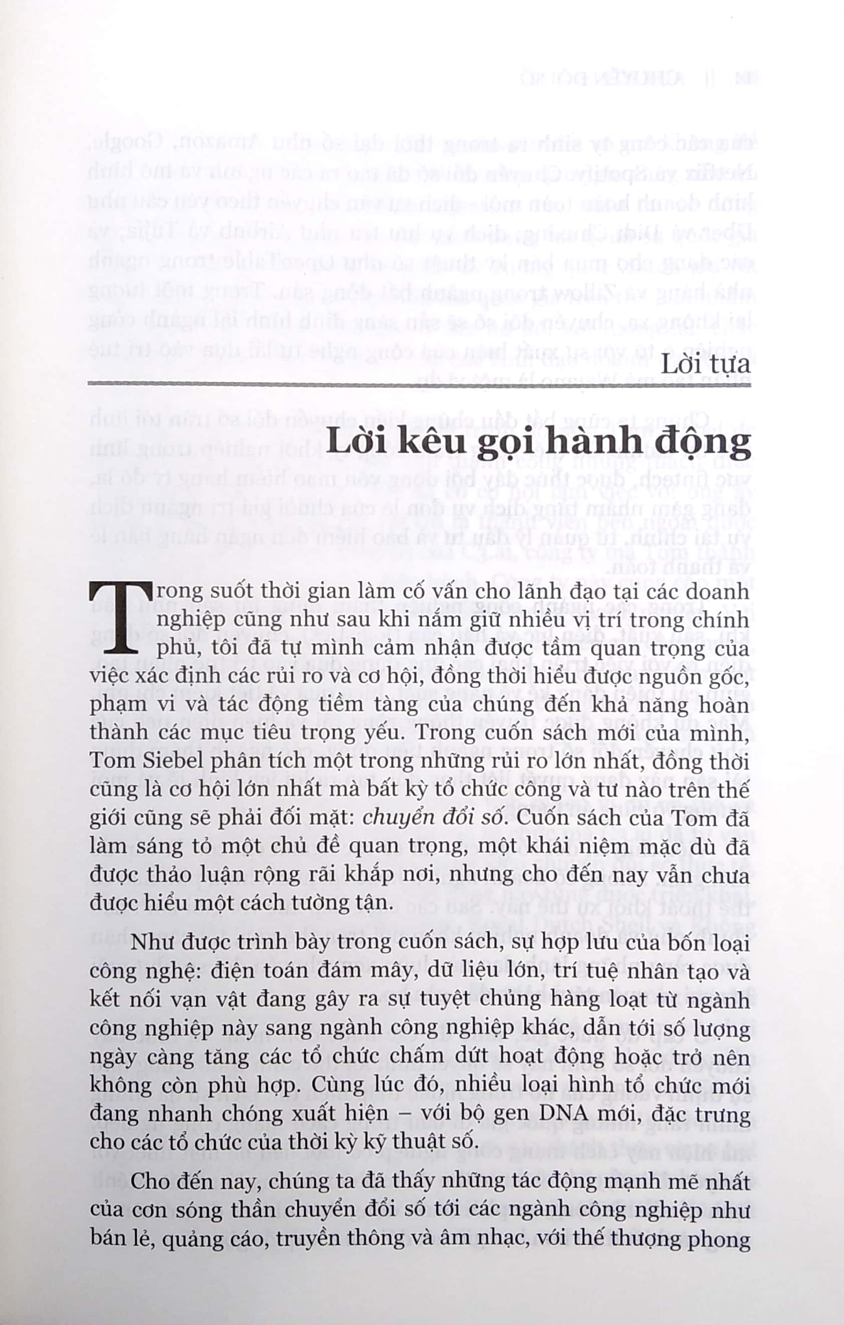 Trong cuốn sách mới của mình, Tom Siebel phân tích một trong những rủi ro lớn nhất, đồng thời cũng là cơ hội lớn nhất mà bất kỳ tổ chức công và tư nào trên thế giới cũng sẽ phải đối mặt: chuyển đổi số. Cuốn sách “Chuyển đổi số” của Tom Siebel đã làm sáng tỏ một chủ đề quan trọng, một khái niệm mặc dù đã được thảo luận rộng rãi khắp nơi, nhưng cho đến nay vẫn chưa được hiểu một cách tường tận.