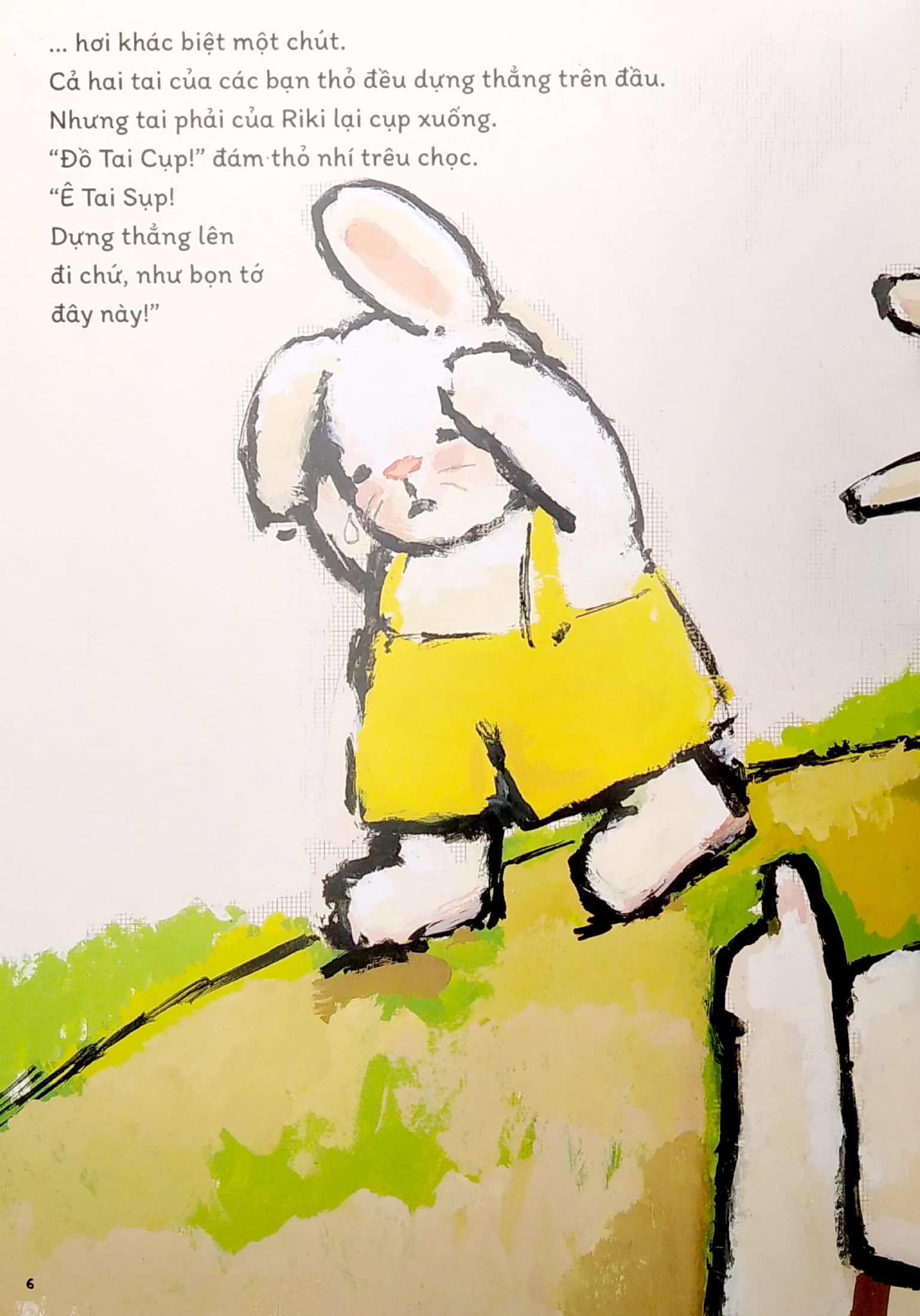 Mua tại TiktokRiki có một chiếc tai cụp. Các bạn thỏ xúm vào cười trêu. Cậu tìm đủ mọi cách để chiếc tai dựng thẳng lên. Cậu treo người trên cành, chèn một củ cà rốt, buộc cả cành cây con, giấu tai trong giành ủ tích trà,… Nhưng chẳng cách nào được cả. Cho đến một ngày kia…