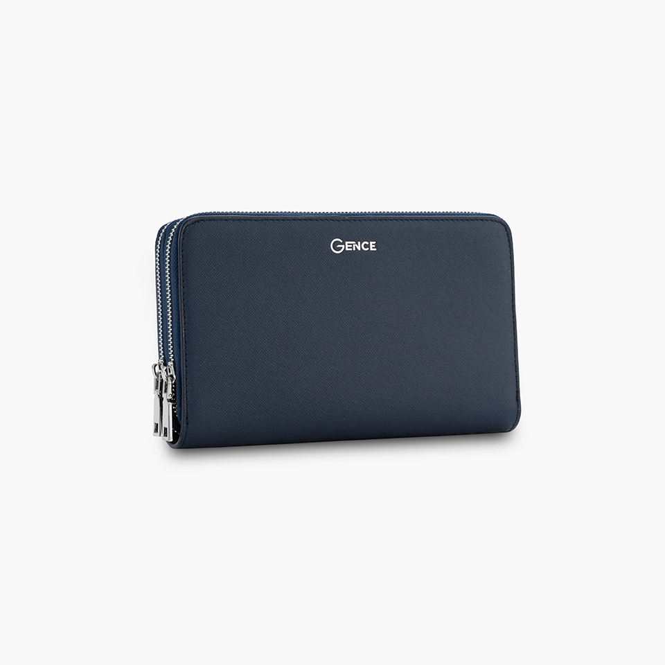 • Ví cầm tay nam Gence 2 khoá da bò Taiga xanh HT20