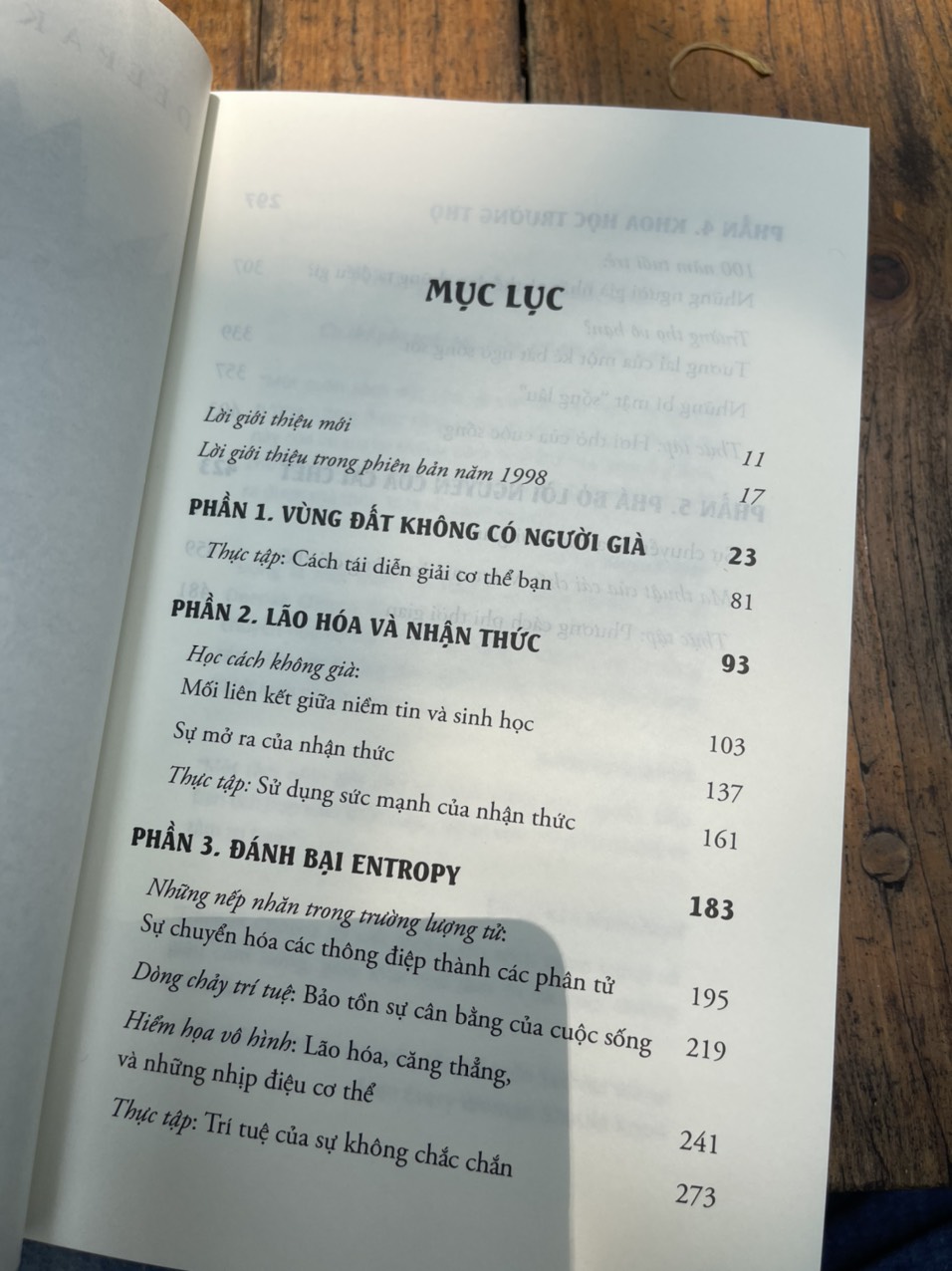 Có một điều thú vị về lão hóa, đó là chưa ai từng chứng minh nó là cần thiết. Khoảng 20 năm trước, khi cuốn sách này lần đầu xuất hiện, thực tế đáng kinh ngạc này đã đúng, và ngày nay, thậm chí nó còn đúng hơn. Ai cũng già đi. Tôi biết điều đó. Nhưng tôi đã được truyền cảm hứng từ một câu nói của triết gia Ấn Độ cổ đại Adi Shankara. Ông tuyên bố rằng “mọi người già đi và chết vì họ thấy người khác già đi và chết”. Cả một cuốn sách đã ra đời chỉ do tôi tự hỏi rằng liệu điều này có khi nào lại đúng không. Y học hiện đại đã cung cấp cho tôi một vài manh mối. Đầu tiên, “tân lão hóa” đã xuất hiện. Các bác sĩ bắt đầu nhìn thấy những bệnh nhân dù đã cao tuổi nhưng cơ thể và tâm trí còn rất trẻ. Rõ ràng sự lão hóa không có khuôn mẫu cố định và chắc chắn không phải lúc nào cũng là 70 tuổi như Kinh Thánh đã nói. (Trong một cuộc thăm dò ý kiến gần đây về thời điểm bắt đầu tuổi già thì mọi người trả lời rằng, trung bình, nó bắt đầu năm 85 tuổi. Một con số đáng kinh ngạc nếu bạn để tâm suy nghĩ.) Thứ hai, bộ não đã được tái định hình. Khi tôi học trường Y, và cả lâu sau đó, mọi người đều cho rằng bộ não bị mất nơ-ron khi con người già đi; nó không có khả năng tự hồi phục sau sang chấn; nó không có khả năng phát triển tế bào não mới. Giờ chúng ta biết rằng cả ba giả định trên đều sai. Bộ não có thể làm mới và tự chữa lành, nó có thể phát triển những kết nối mới trong suốt cuộc đời một con người. Một ví dụ kịch tính của điều này là nhiều người già ngày nay đang chơi một loạt những trò chơi được thiết kế với mục đích giúp não bộ luôn trẻ trung và dẻo dai. Những “phòng tập dành cho não bộ” này hoạt động trên nguyên tắc là bộ não phát triển những đường dẫn mới bất cứ khi nào nó gặp phải những nhiệm vụ mới. Khẩu hiệu “Không dùng thì mất” đã xuất hiện khi cuốn sách này được viết ra, nhưng nó còn quá thiếu sót. Nhờ một lĩnh vực mới có tên là khả biến thần kinh – lĩnh vực nghiên cứu khả năng thay đổi của bộ não – các nhà nghiên cứu đã đạt được niềm tin là bộ não có độ dẻo dai vô hạn…