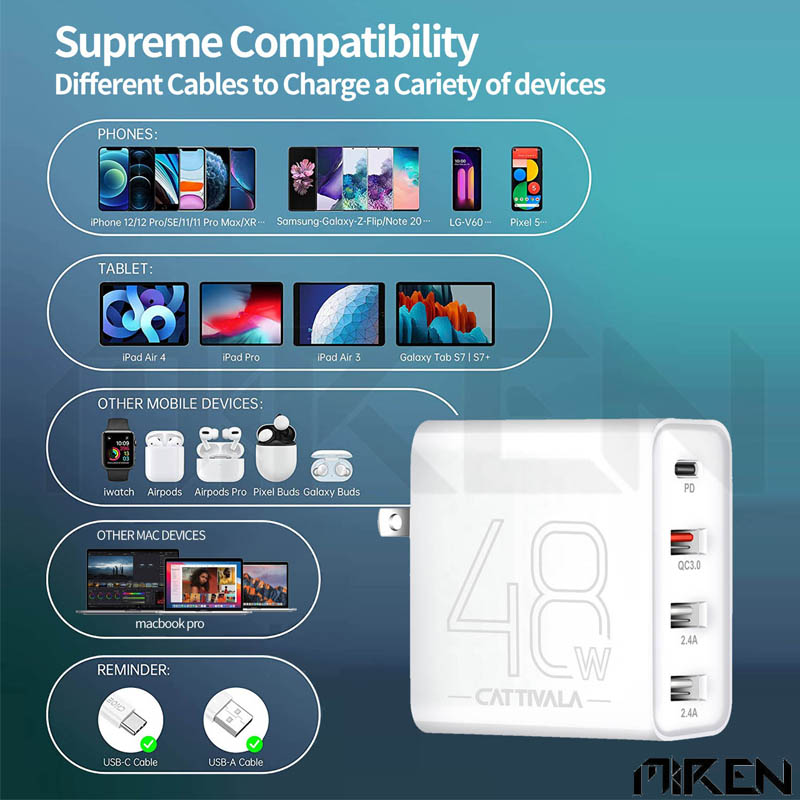 ✨Cốc – Adapter Sạc Nhanh 4 Cổng Cattivala 48W – Đa Năng – Tương Thích Đa Thiết Bị. Hàng Chính Hãng