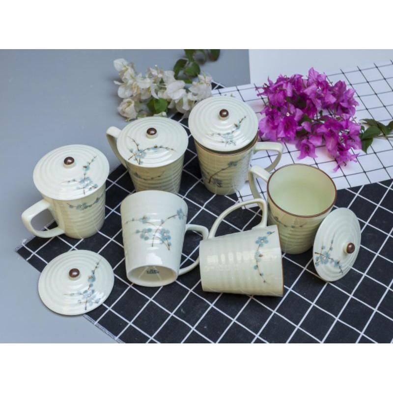 ✨Cốc sứ Bát Tràng có nắp vẽ hoa men kem