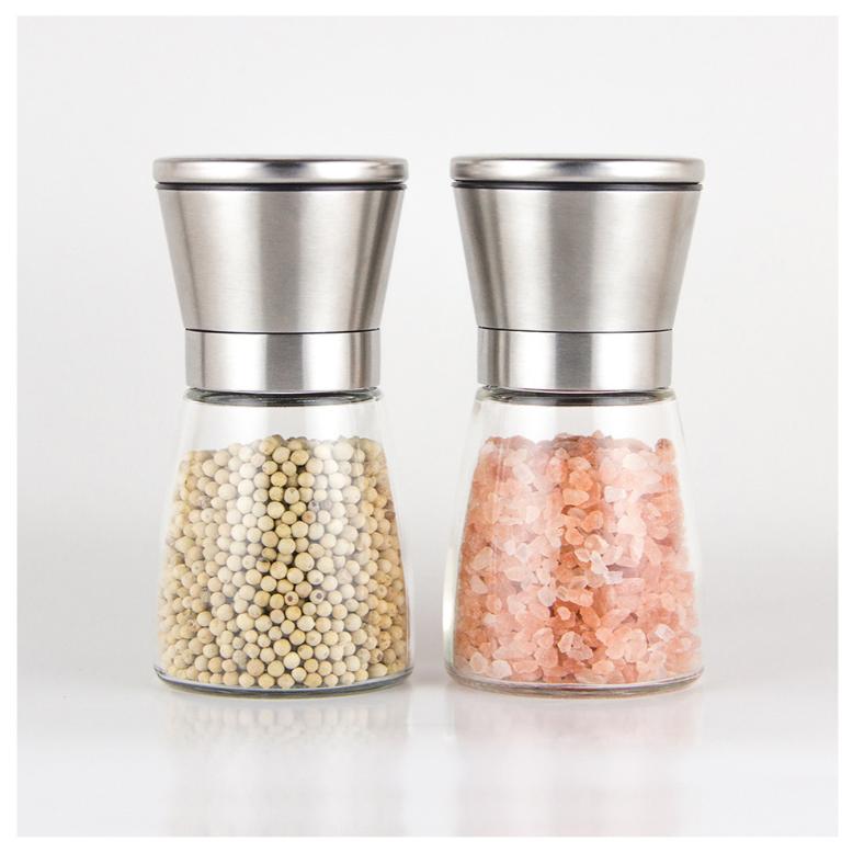 Máy Xay Tiêu Cầm Tay Thủy Tinh Dụng Cụ Cối Xay Tiêu Nắp Inox Vặn Tay