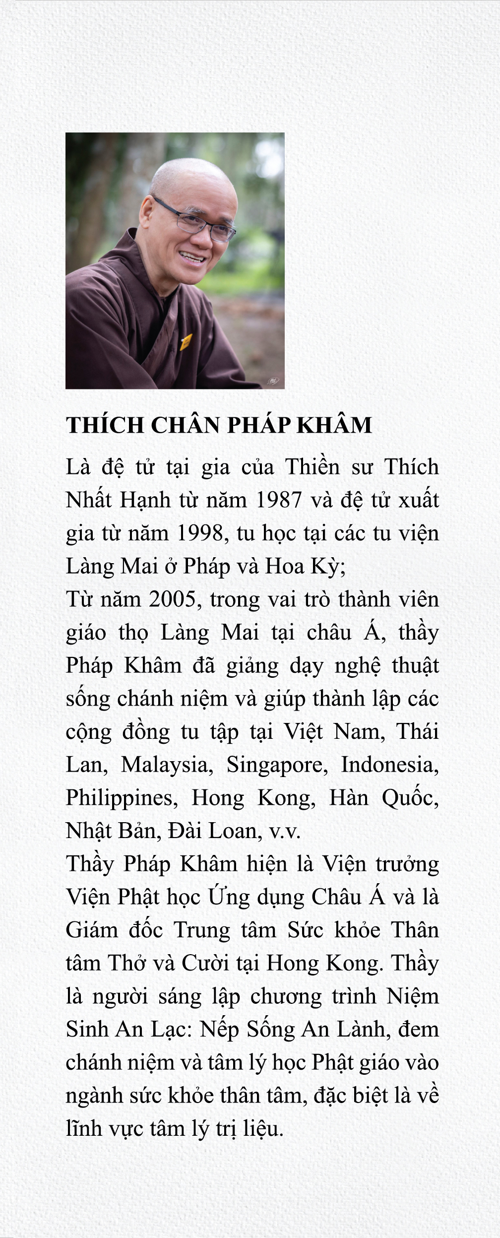 Những đề tài được chia sẻ trong cuốn sách này có lẽ sẽ không bao giờ cũ. Từ ngàn xưa và cho đến ngàn sau, con người luôn khổ đau vì tham sân si, và con đường để chuyển hóa chúng là Bát Chánh Đạo, trong đó chánh niệm đóng vai trò quan trọng trong việc nhận thức được tính vô thường, vô ngã và bất nhị của các hiện tượng trong cuộc sống. Từ đó, chúng ta sẽ có một cái nhìn rõ ràng về tự tánh của thực tại mà vượt qua được thách thức và tạo ra hạnh phúc.