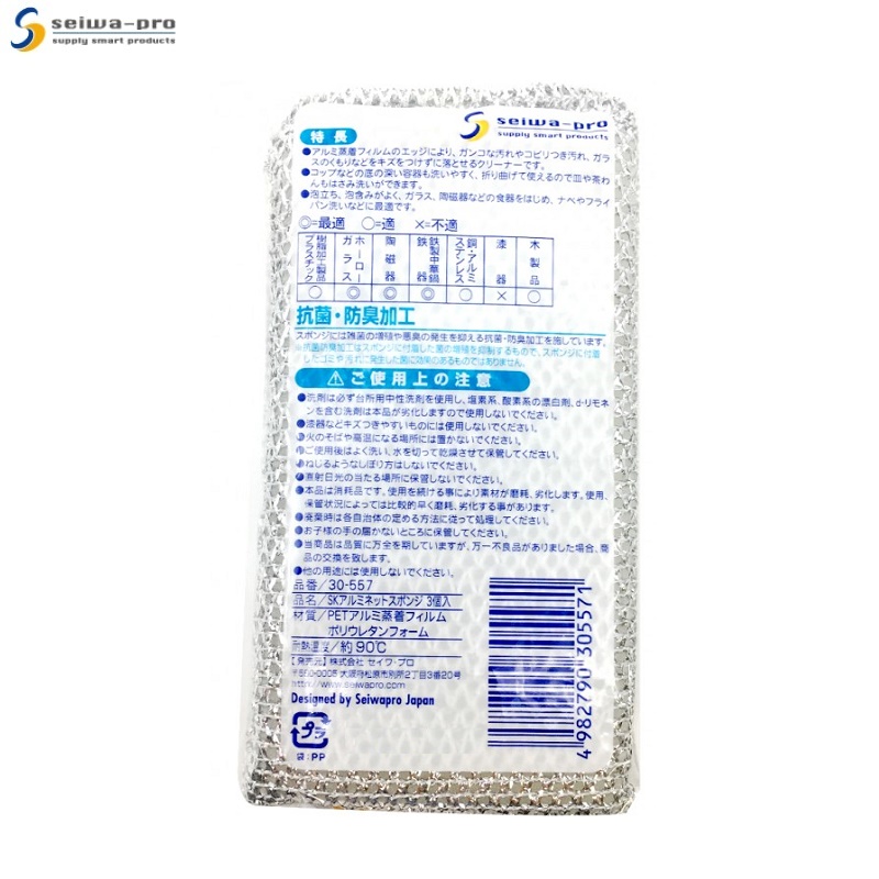 ✨Combo 02 set (03 miếng) mút màng nhôm cọ rửa ly chén Seiwa Pro hàng nội địa Nhật Bản
