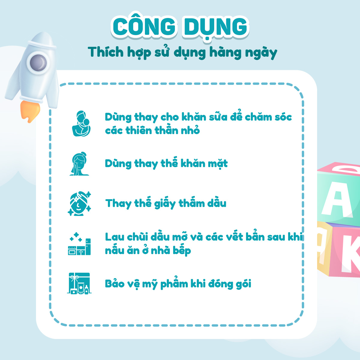 Khăn vải khô đa năng được làm từ chất liệu vải không dệt, có đặc tính dai, mềm, mịn, độ co giãn cao. Sản phẩm có thể sử dụng thay thế hoàn toàn khăn ướt,