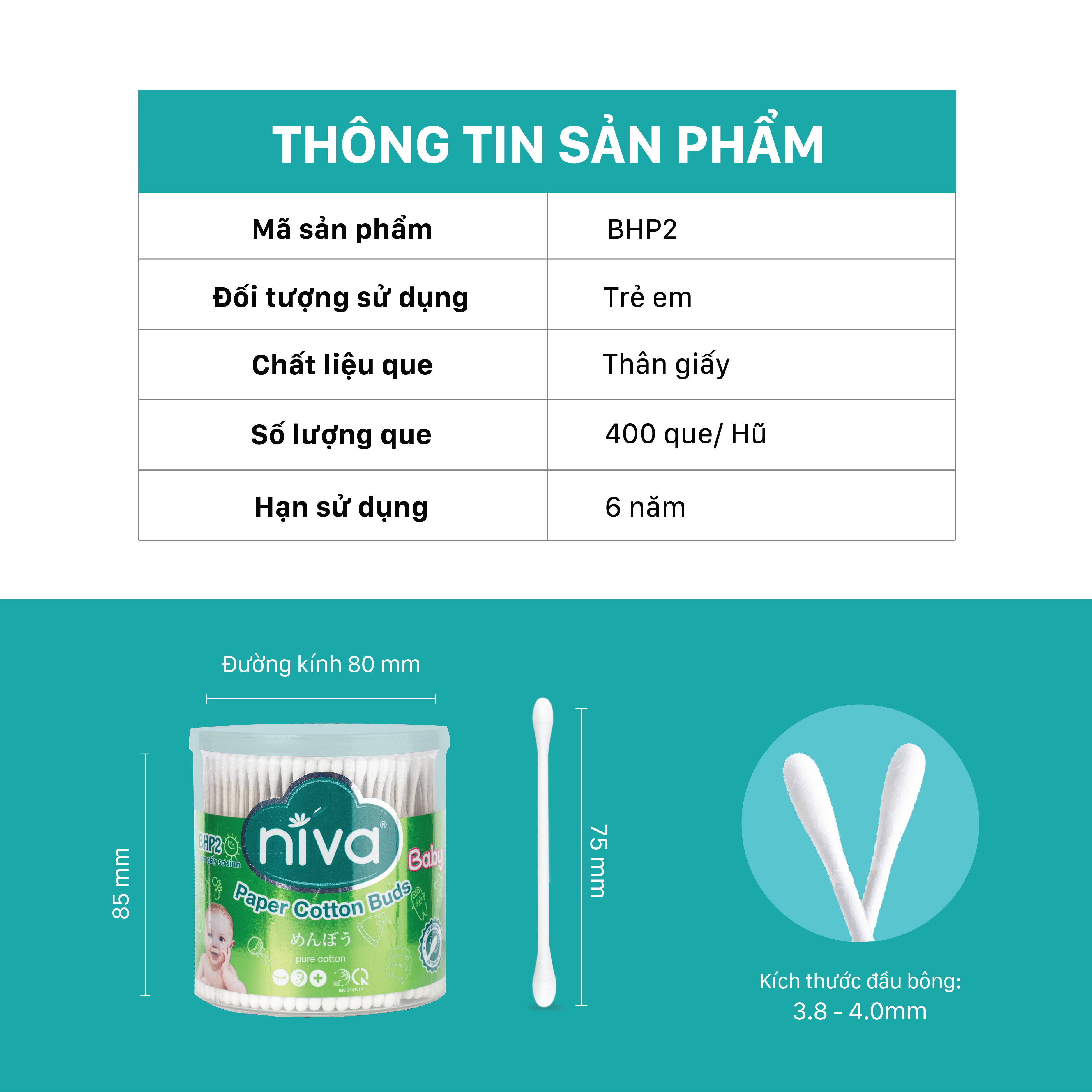 ✨Combo 06 Tăm Bông Niva Cho Trẻ Sơ Sinh Hũ Xoay 400 Que Thân Giấy BHP2 Bông Tự Nhiên Kháng Khuẩn An Toàn, Thân Thiện Môi Trường