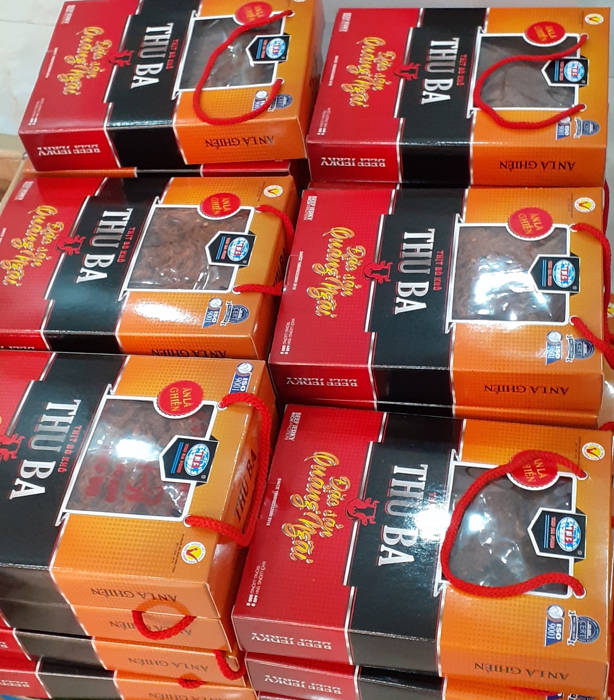 BÒ KHÔ THU BA là món đặc sản Quảng Ngãi, đạt tiêu chuẩn ISO 22000:2018 và là Hàng Việt Nam Chất Lượng Cao do Người tiêu dùng bình chọn từ 2017 đến 2024
