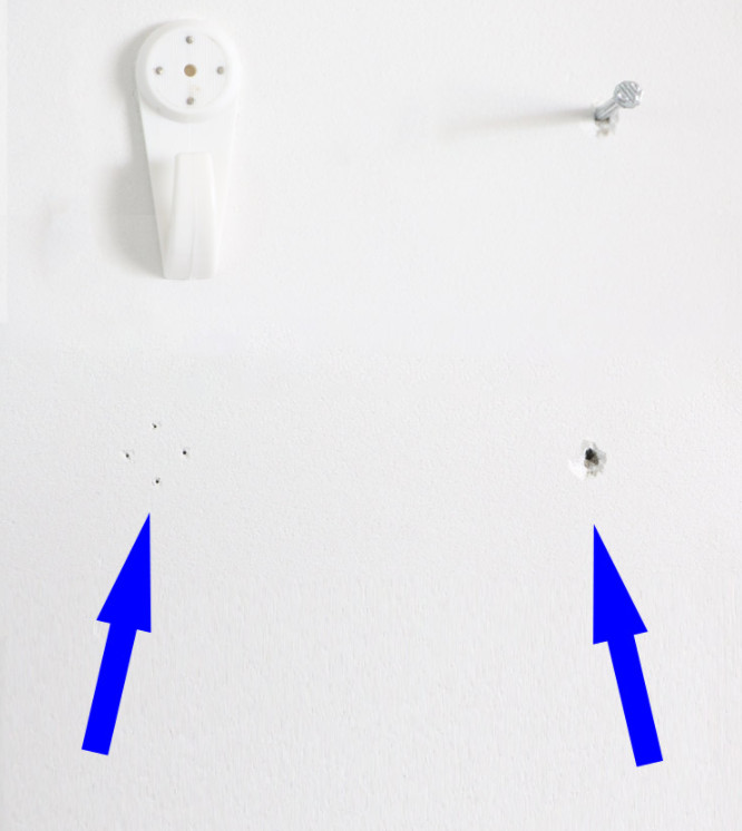 Móc treo gắn tường bằng cách đóng thẳng đinh ghim thép vào tường tiện lợi không cần khoan, con gái cũng có thể dễ dàng làm đượ