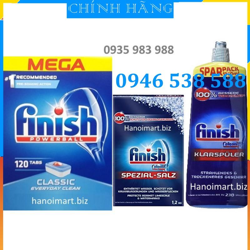 - viên rửa bát finish 120 viên + muối finish 1.2kg + Nước làm bóng finish 400ml dùng cho máy rửa bát Viên rửa bát Finish 120 viên nhập khẩu từ đức chuyên dùng cho