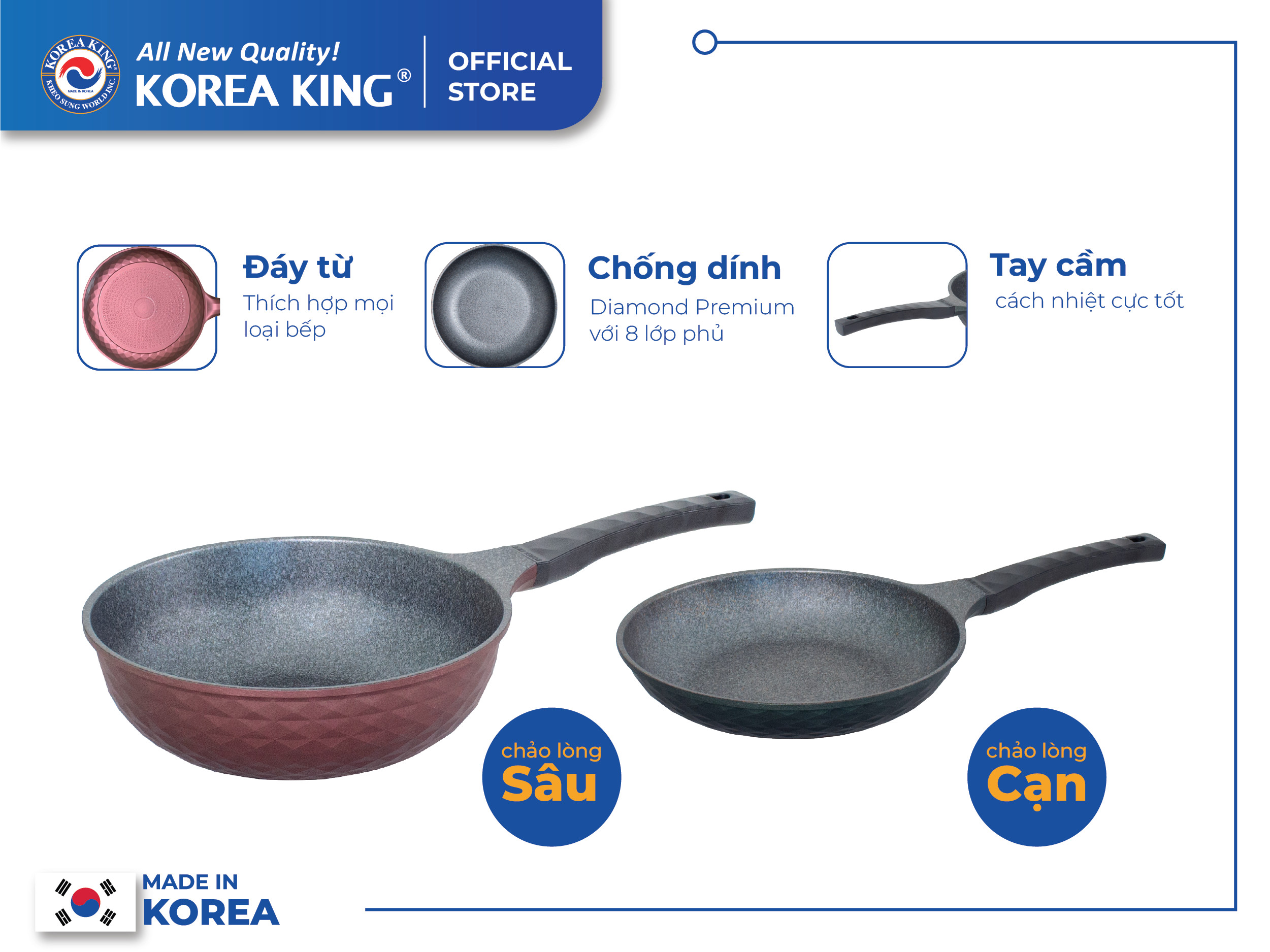 Chảo chống dính thương hiệu Korea King là món quà thiết thực cho các bà nội trợ, giúp việc nấu nướng thuận lợi và có nhiều lựa chọn hơn, phù hợp với mọi không gian