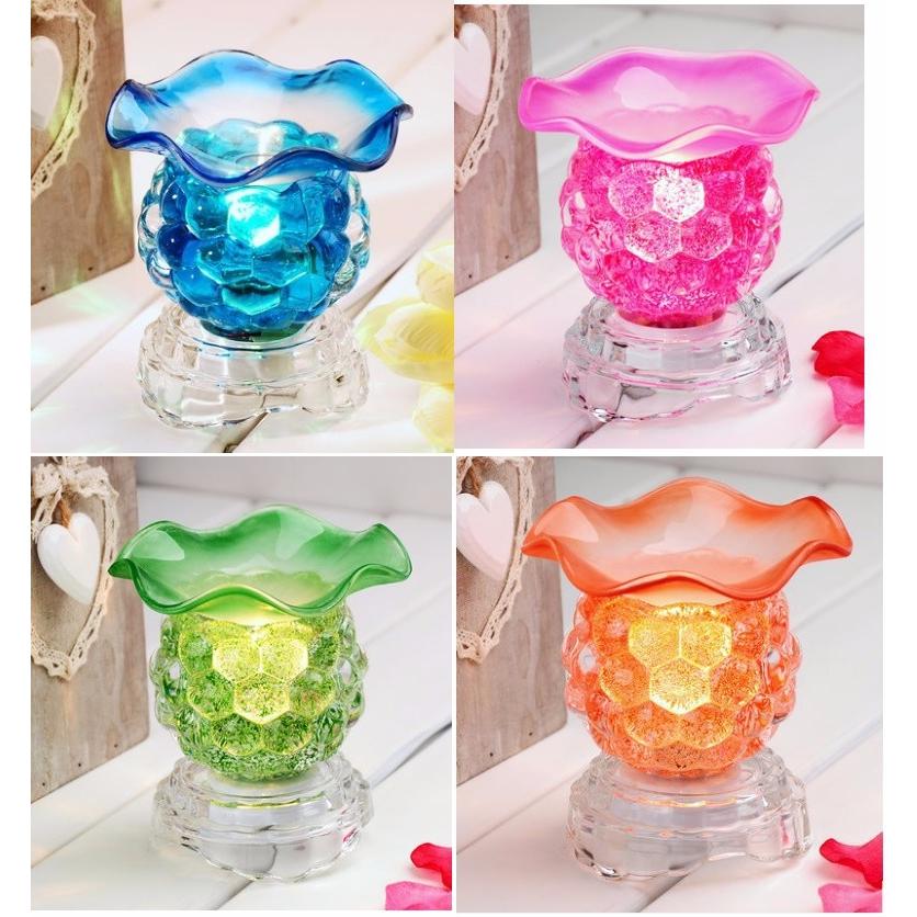 ✨Combo 2 Đèn xông tinh dầu thủy tinh nho kèm 2 chai tinh dầu sả chanh và 2 bóng đèn (Giao màu ngẫu nhiên)