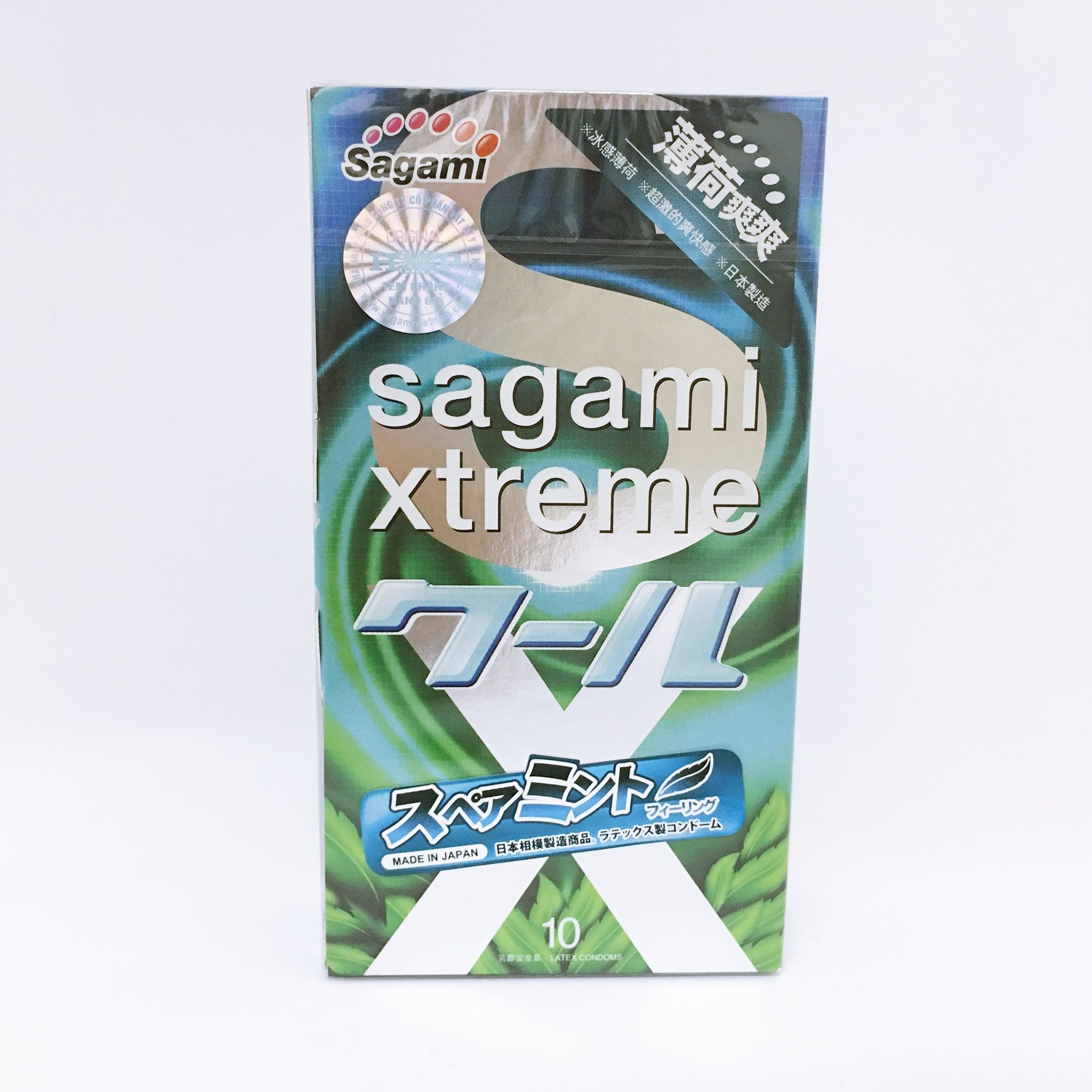 Bao cao su Bạc hà Sagami XTreme Spearmint 0.05mm siêu mỏng kéo dài thời gian (10 bao/hộp)