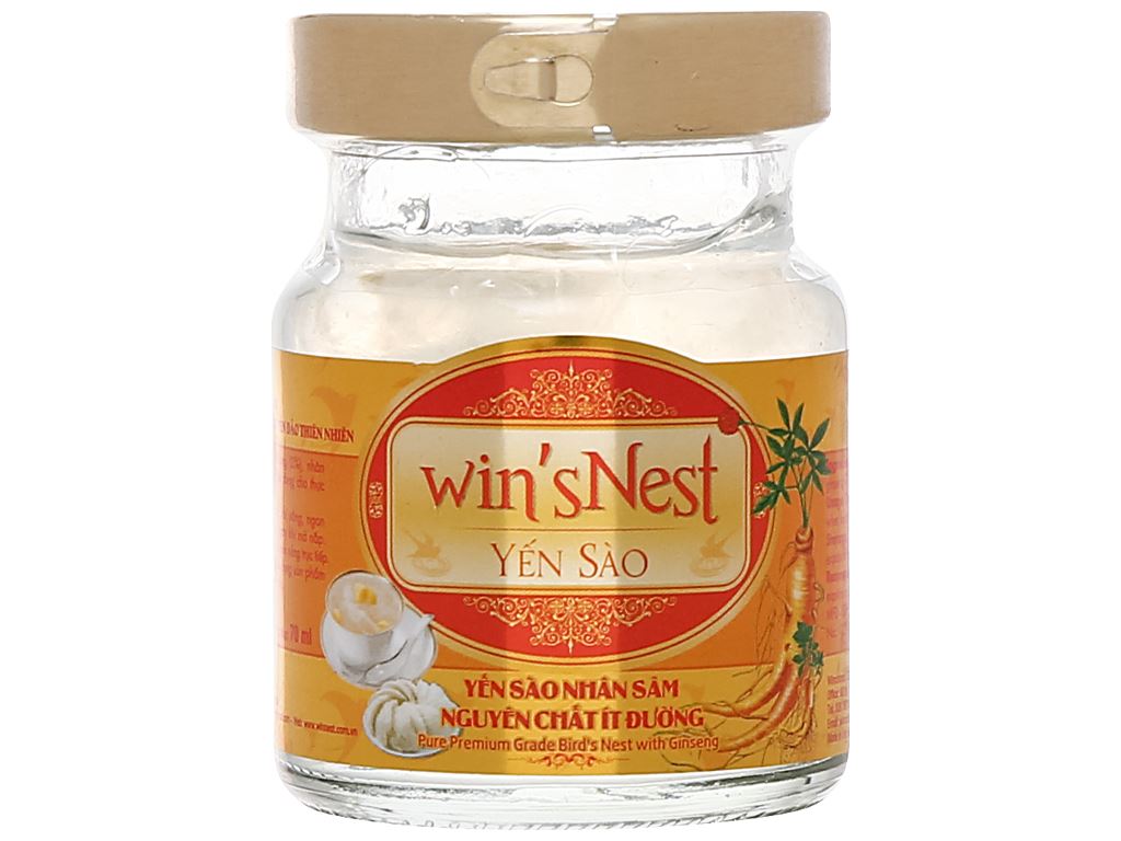 Yến sào cao cấp win'sNest tổ yến chưng sẵn nhân sâm ít đường được sản xuất từ nguồn yến đảo thiên nhiên, là một sản phẩm của công ty wincofood. Được sản xuất bằng phương pháp cổ truyền trên dây chuyền đạt tiểu chuẩn an toàn thực phẩm.