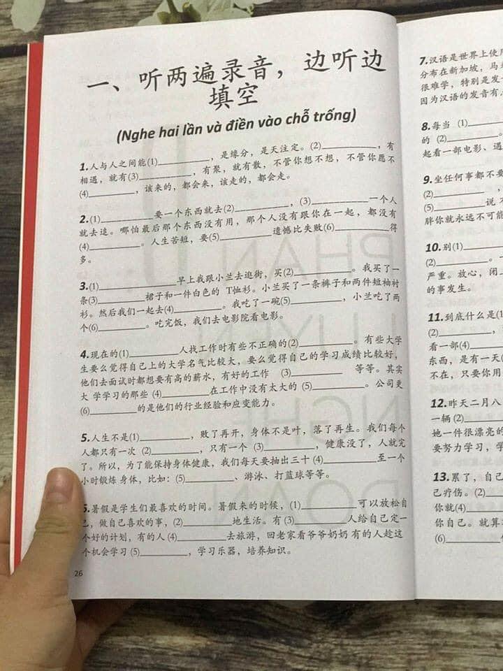 - Hack nhanh kỹ năng nghe tiếng Trung Tác giả: Nhật Phạm Số trang: 248 Nhà xuất bản Hồng Đức Năm xuất bản: 2020 Hack nhanh kỹ năng nghe tiếng Trung Nội dung sách gồm ba phần chính: luyện nghe câu, luyện nghe đoạn và luyện nghe theo tranh. Mỗi phần sẽ có các dạng bài tập khác nhau: điền trống, khoanh đáp án, phán đoán đúng sai, trả lời câu hỏi, nhằm nâng cao khả năng nghe hiểu bằng nhiều hướng tiếp cận, tránh gây sự chú ý, nhàm chán. Các câu hỏi ở mỗi phần cũng được sắp xếp theo cấp độ từ dễ đến khó, giúp người học đi từ giai đoạn làm quen đến thành thạo và cuối cùng là thuần thục. Vậy vì sao nên lựa chọn cuốn "Hack nhanh kỹ năng nghe tiếng Trung"? Có hai nguyên nhân chủ yếu. Thứ nhất, sách được thiết kế bài bản, có hệ thống, nhiều dạng bài, nội dung đa dạng, cuốn sách có đáp án và giải thích chi tiết, dễ hiểu. Thứ hai, audio sách được thu bởi người bản ngữ, giọng đọc chuẩn, âm thanh chất lượng. Sau khi nhận được hàng bên trong sách sẽ có hướng dẫn nhận file nghe chi tiết.