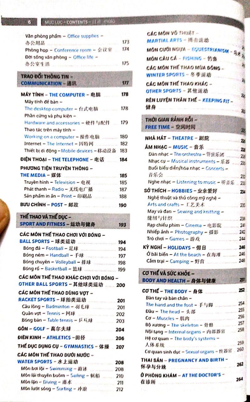 Từ điển được chia theo chủ đề, bao quát hầu hết các phương diện của cuộc sống hằng ngày, từ nhà hàng đến phòng tập thể dục, từ nhà ở đến nơi làm việc, từ thành thị đến cảnh quan thiên nhiên. Bạn cũng sẽ thấy nhiều từ và cụm từ bổ sung để sử dụng trong giao tiếp và để mở rộng vốn từ.