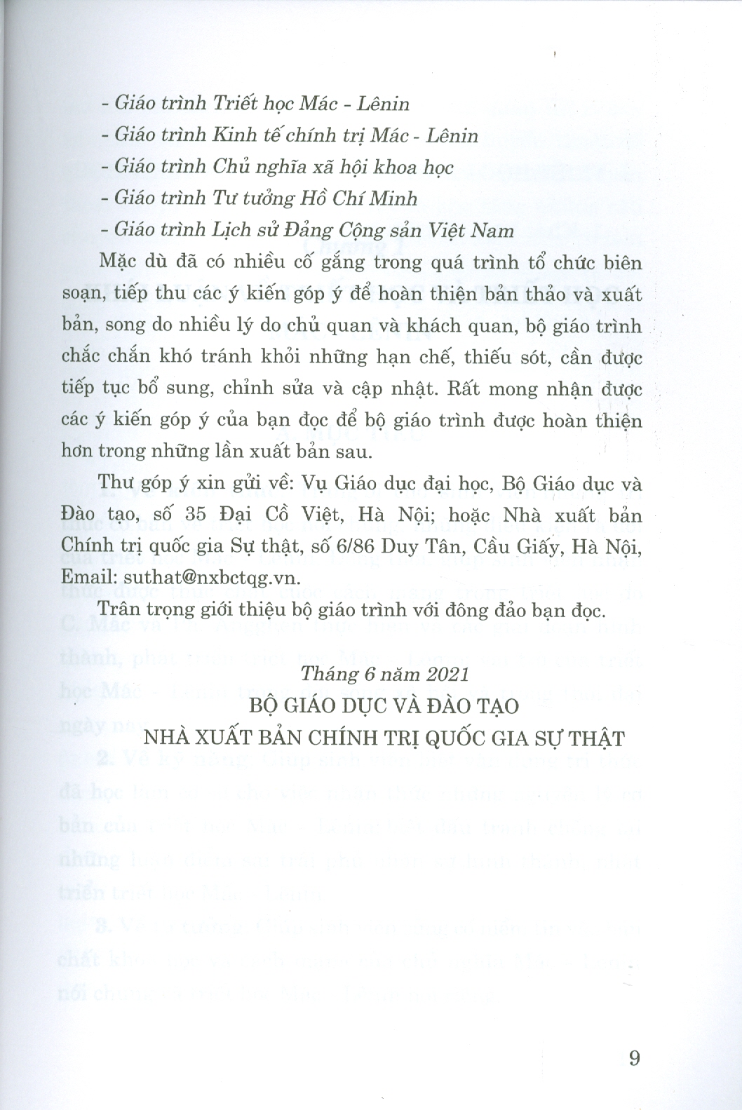 Bộ giáo trình lý luận chính trị gồm 5 cuốn dành cho bậc đại học hệ không chuyên lý luận chính trị. Bộ sách là tài liệu giảng dạy, học tập cho giảng viên, sinh
