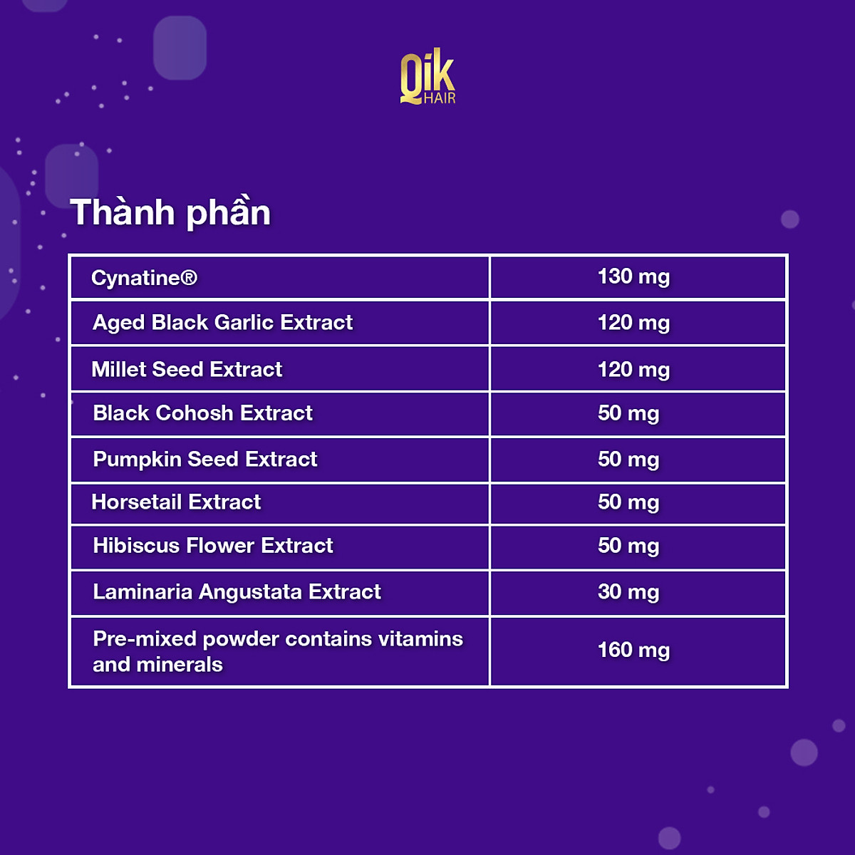 - CÔNG DỤNG Qik (For Women) với công thức chuyên biệt cho nữ giới, chứa các tinh chất thiên nhiên, giúp hỗ trợ cân bằng hệ thần kinh nội tiết và tăng trưởng tế bào mầm tóc: