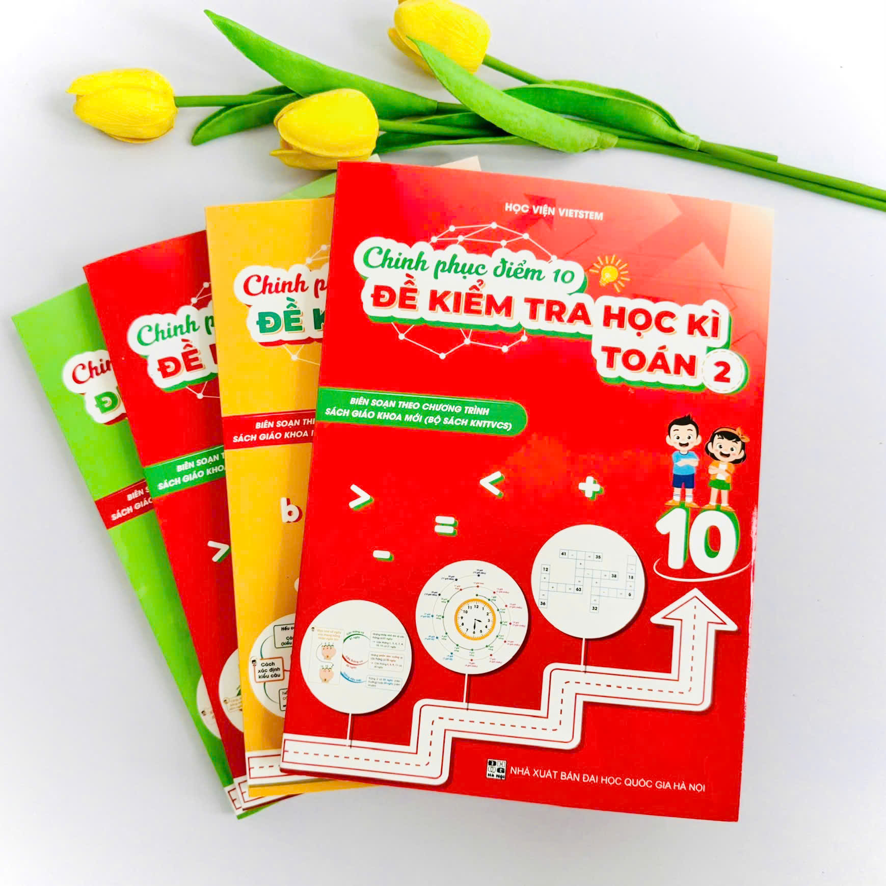 COMBO 4 SÁCH CHINH PHỤC ĐIỂM 10 ĐỀ KIỂM TRA HỌC KÌ TOÁN VÀ TIẾNG VIỆT 1 VÀ 2 (KNTT) **Giới thiệu chung Bộ 4 sách "Chinh Phục Điểm 10 Đề Kiểm Tra Học Kì Toán và Toán, Tiếng Việt 1 và 2 (KNTT)" do Học Viện VIETSTEM biên soạn là một phần trong bộ sách "Chinh Phục Điểm 10 Đề Kiểm Tra Học Kì" dành cho học sinh từ lớp 1 đến lớp 12. Bộ sách này ra đời tập trung giải quyết vấn đề mà hầu hết các phụ huynh đều quan tâm: "Làm thế nào để giúp con nắm chắc kiến thức, đạt kết quả cao trong các bài kiểm tra học kì và thành tích của cả năm học?".