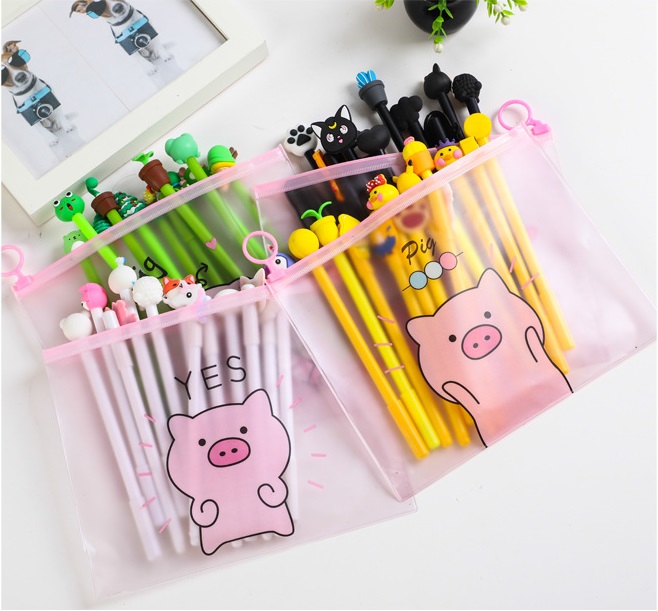 ✨Combo 4 túi zip đựng bút chống thấm hình heo hồng pink pig nhiều mẫu