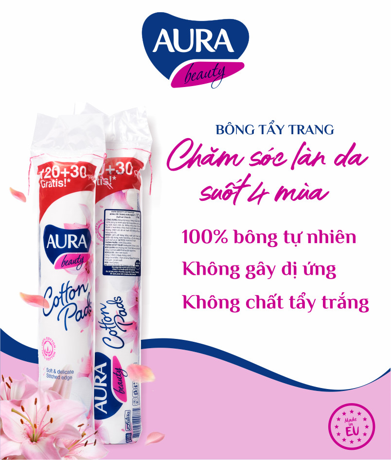- Combo Bông Tẩy Trang Aura Beauty 150 Miếng 100% cotton nhập khẩu từ Châu Âu sản phẩm hộ trợ tẩy trang hoàn hảo. - Bông được cấu tạo từ 100% cotton nguyên chất, không hóa