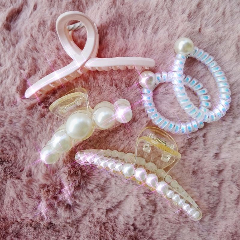 Bộ 5 món kẹp tóc đính ngọc trai, cột tóc Hàn Quốc phong cách trẻ trung xinh xắn KT28 Kẹp càng cua, dây buộc tóc đính ngọc trai là món phụ kiện tóc rất được