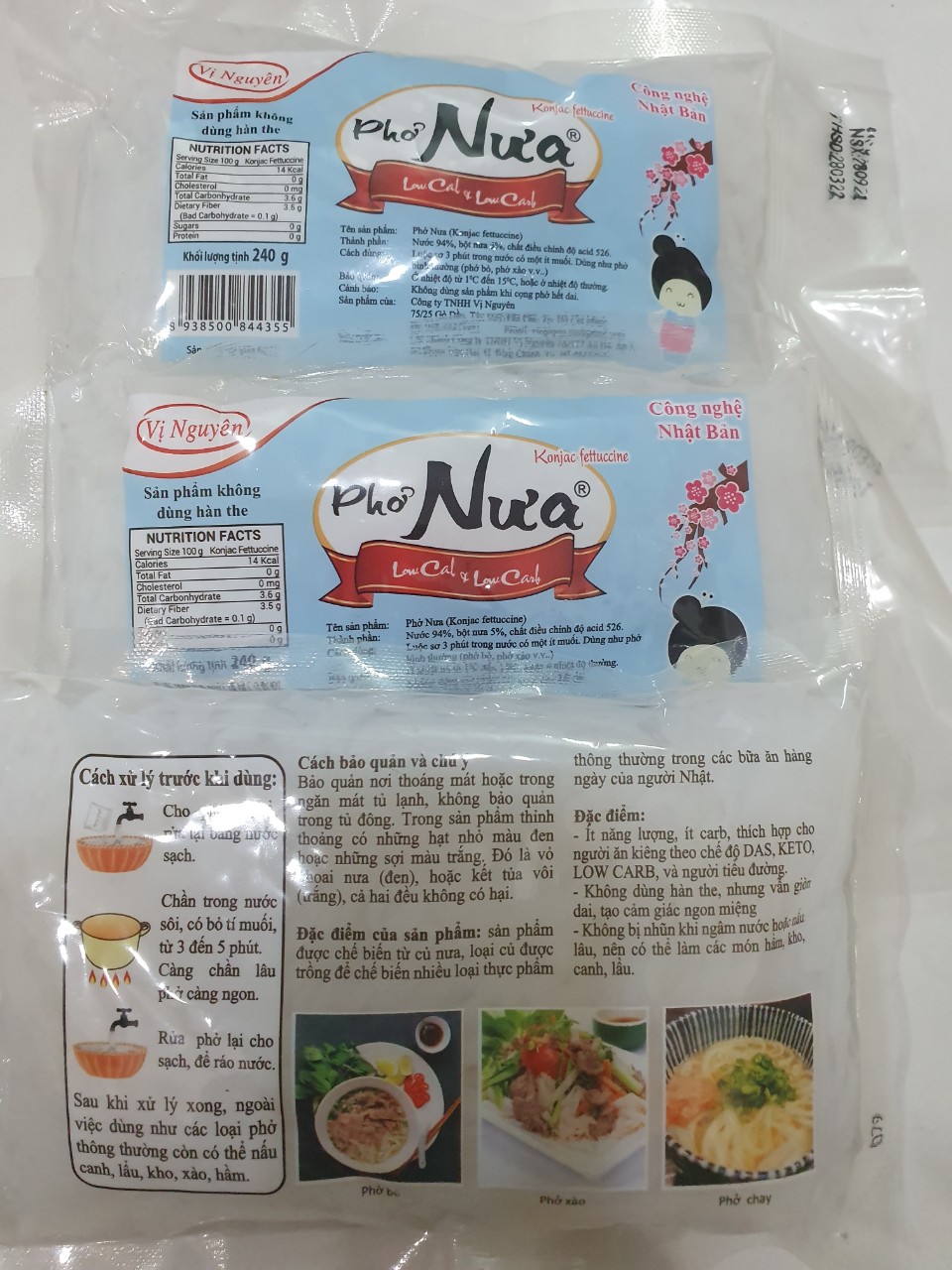 PHỞ NƯA VỊ NGUYÊN 240G - Xuất xứ: Việt Nam - Hạn sử dụng: 6 tháng (gói 240g) - Đóng gói: 240g/gói - Bảo quản: Nơi thoáng mát Những thực phẩm được làm từ bột Glucomanna