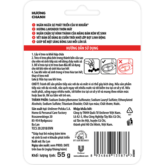 - Để vỉ treo tại vị trí treo ban đầu để sử dụng cho tới khi viên vệ sinh hoà tan hết.