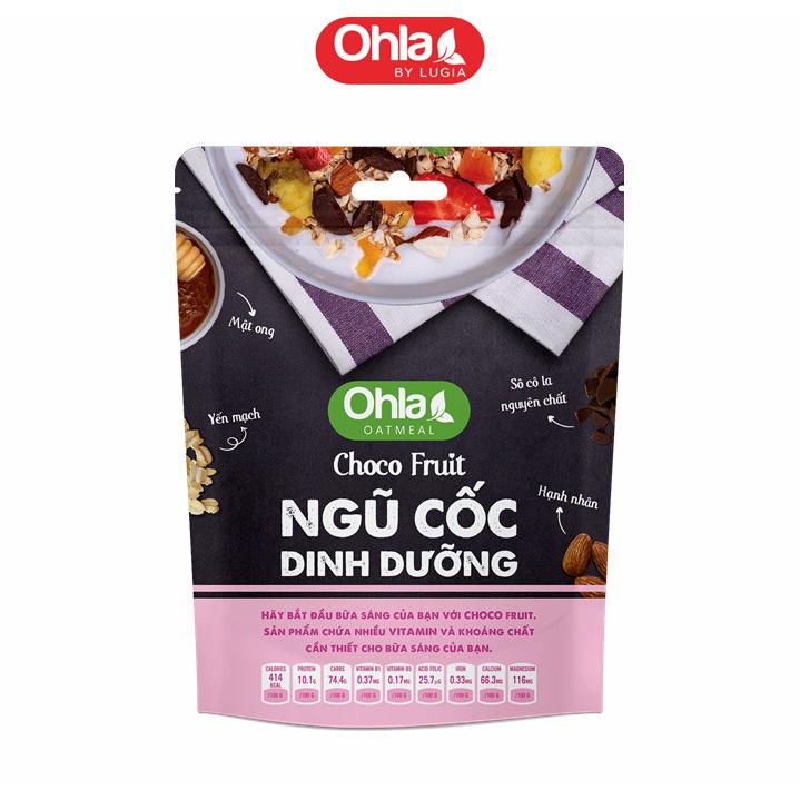 - 1 túi ngũ cốc dinh dưỡng Choco Fruit 180g THÔNG TIN DINH DƯỠNG *Thành phần NGŨ CỐC DINH DƯỠNG TROPICAL FRUIT: Yến mạch (50%), mật ong (15%), hạnh nhân (12%), đu đủ sấy dẻo (10%), dừa sấy giòn (11%), dầu dừa (1,6%).