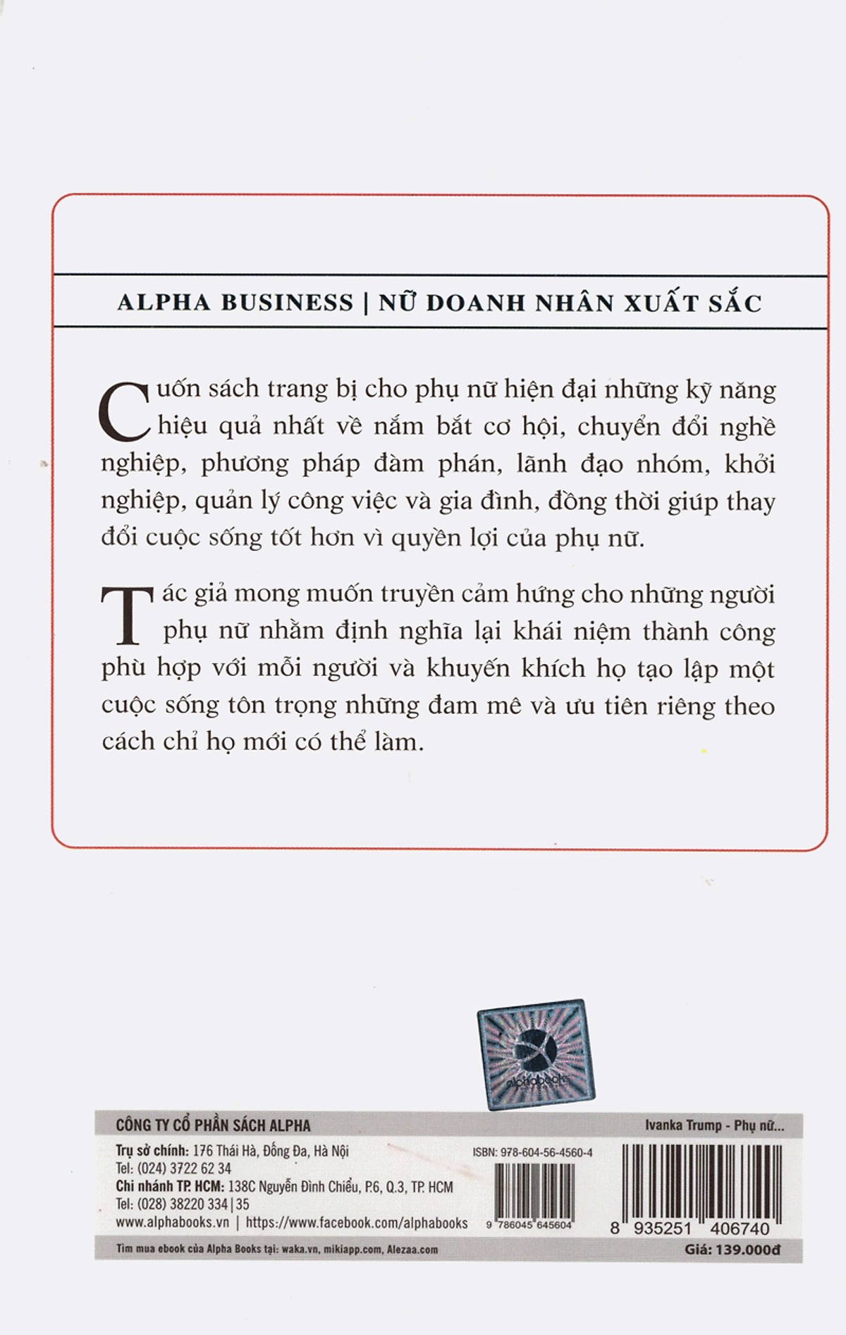 Liệu chúng ta có thể thay đổi điều đó, khuyến khích phụ nữ trở thành những nhà lãnh đạo tài ba và có được cuộc sống mà mình mong muốn? Ivanka Trump, con gái đầu lòng của đương kim tổng thống Hoa Kỳ sẽ trả lời câu hỏi đó trong cuốn sách mà cô viết: “Phụ nữ hiện đại viết lại luật thành công.”