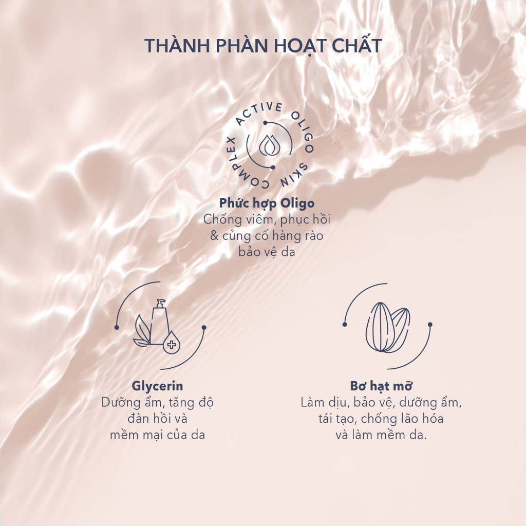 Chỉ định: Da chàm, viêm da cơ địa, dị ứng, ngứa, mẩn đỏ Cách dùng: Đỗ vài giọt vào tay và tạo bọt, nhẹ nhàng rửa sạch da mặt, da cơ thể và mái tóc. Rửa sạch