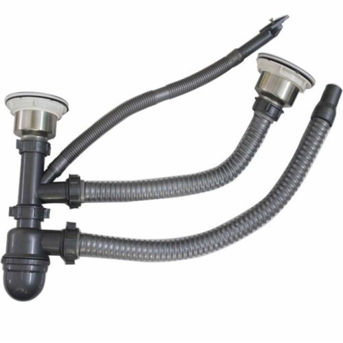 Bộ xi phông, ống xả 2 hố có cốc lọc rác & nắp đậy được làm từ Inox đảm bảo không hoen gỉ trong môi trường nước. Nắp đậy & các khớp nối có gioăng đảm bảo kín nước, không bị rò gỉ sau thời gian dài sử dụng.