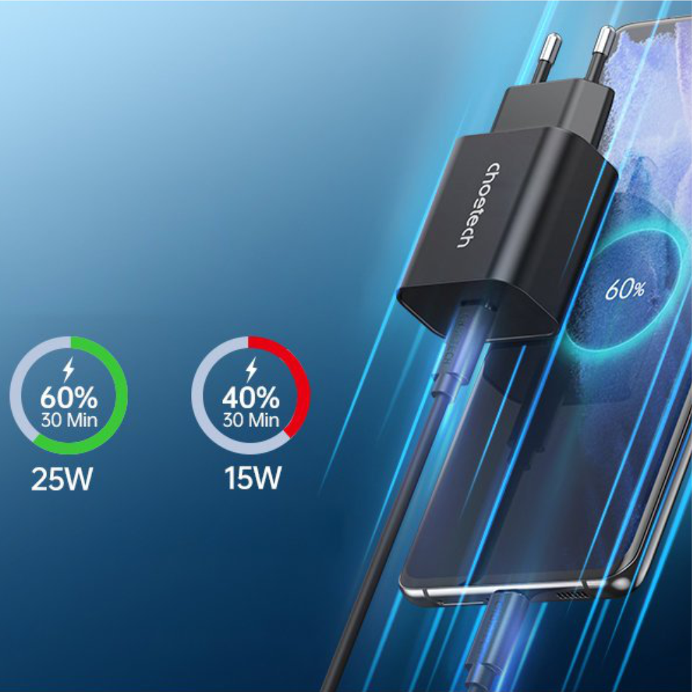 CHOETECH Thương hiệu chính hãng - Giao nhanh tại Việt Nam. Combo Củ Sạc Nhanh PPS PD 25W CHOETECH PD6003 - Cáp Type C 60W Dài 1.2m XCC-1003 Cho Điện Thoại Samsung, Oppo, Vivo, Xiaomi