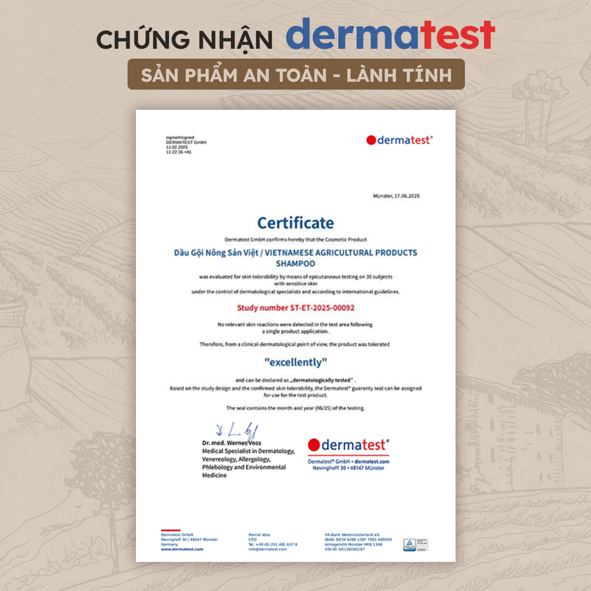 Sản xuất tại Việt Nam theo tiêu chuẩn CGMP ASEAN – Được kiểm nghiệm phù hợp da nhạy cảm bởi Dermatest (Đức).