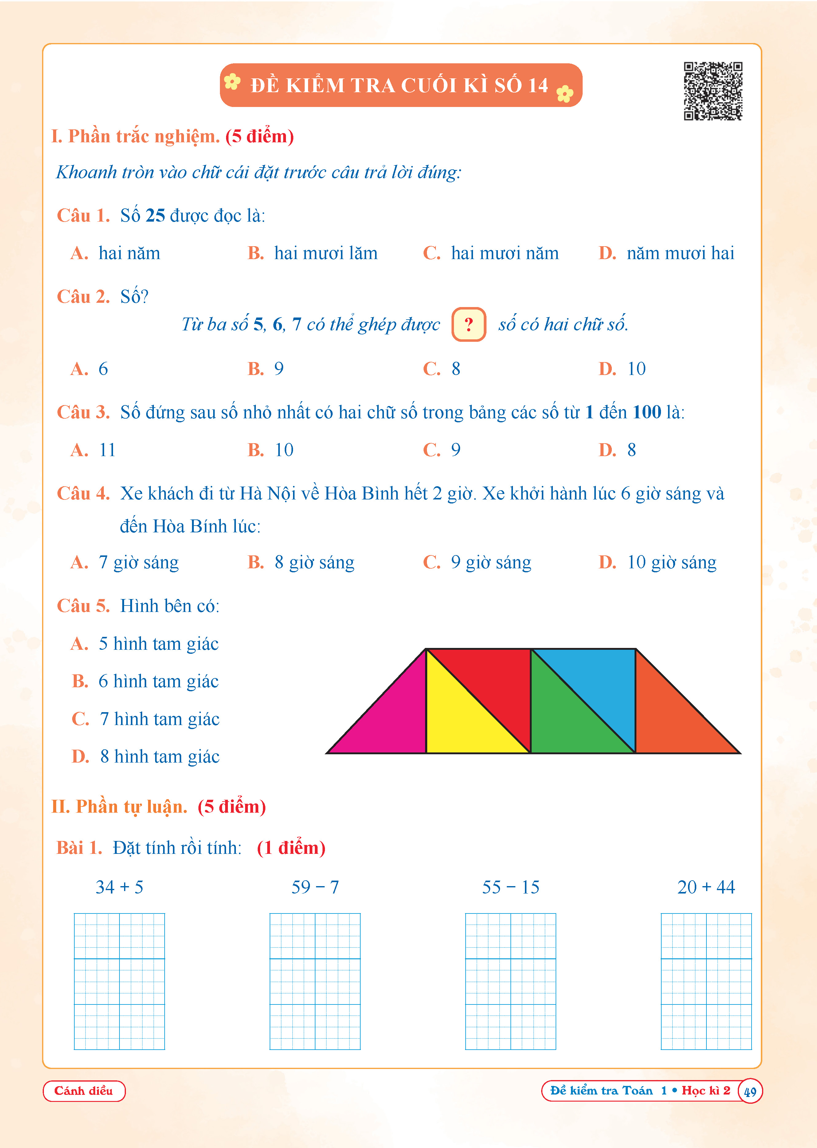 Đề Kiểm Tra Toán, Tiếng Việt Lớp 1 - Cánh Diều Giải pháp hoàn hảo cho con tự học ở nhà với lộ trình học, ôn bài, luyện tập và kiểm tra tại nhà rất